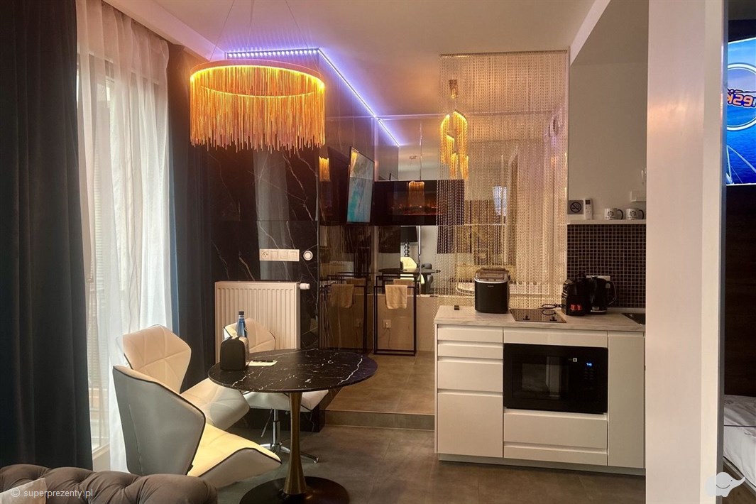 Prezent dla pary: luksusowy pobyt w apartamencie King z jacuzzi, dwoma TV i elektrycznym kominkiem w Glass House Apartments w Krakowie. Relaks i romantyzm!
