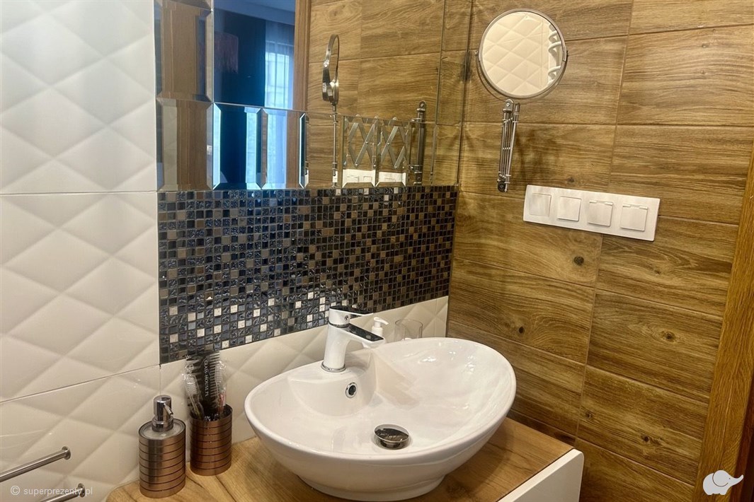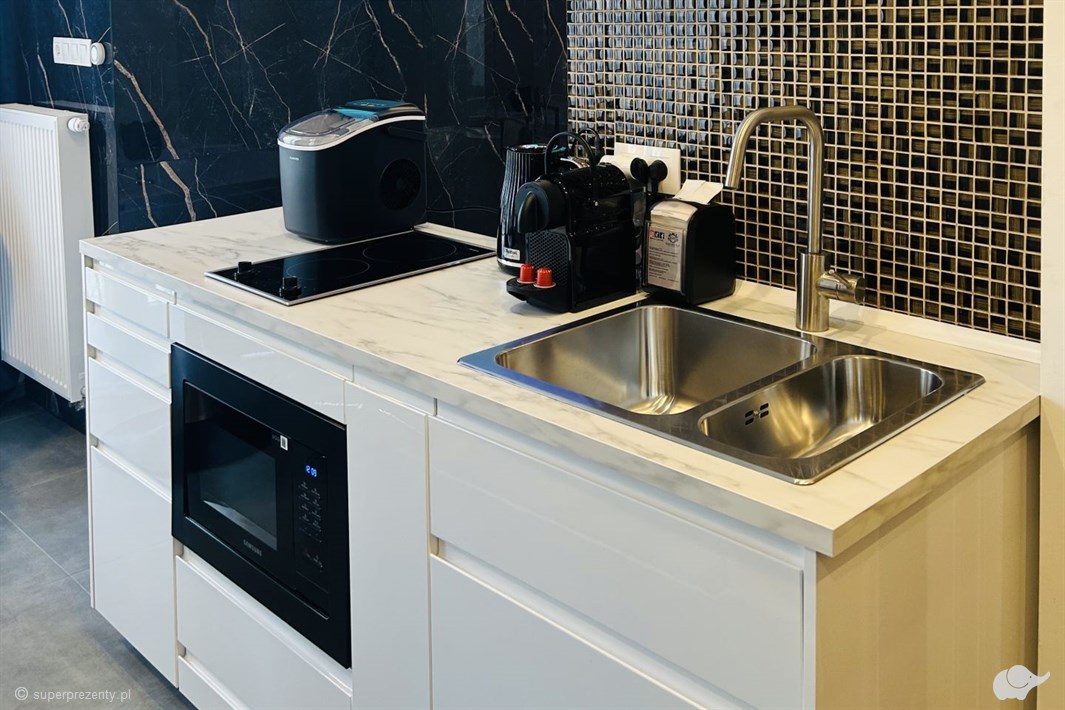 Apartament King to przestrzeń pomyślana z myślą o relaksie – wanna z jacuzzi i telewizorem nad nią, osobna łazienka z prysznicem, elektryczny kominek tworzący ciepły nastrój i lustrzana ściana, która optycznie powiększa wnętrze. Dwa telewizory z Netflixem pozwalają na wieczorne seanse w wannie lub w łóżku, a pełne zaplecze kuchenne daje swobodę w planowaniu posiłków. To apartament stworzony dla pary, która szuka intymności i luksusu w sercu Krakowa!