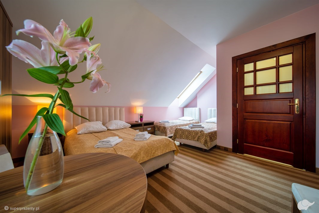 Pięknie zaaranżowany pokój dwuosobowy typu standard to jedyny męski rzeczownik w trakcie tego pobytu, butelka wina na powitanie podkręci ostrość rozmów co najmniej o kilkanaście procent, a nieziemsko dobra kolacja nasyci Was przed pieszymi wycieczkami poza obiektem. Nie sposób nie wspomnieć o tutejszej strefie SPA, gdzie wypoczniecie w zupełnym wyciszeniu. W ramach vouchera skorzystacie również z masażu klasycznego, mającego dobroczynny wpływ na krążenie krwi i kondycję mięśni oraz kręgosłupa. Pokażcie, jak ważne jesteście dla siebie w każdym momencie życia – wybierzcie voucher, dzięki któremu wspomnienia staną się tak niezniszczalne, jak ta niezwykła przyjaźń!