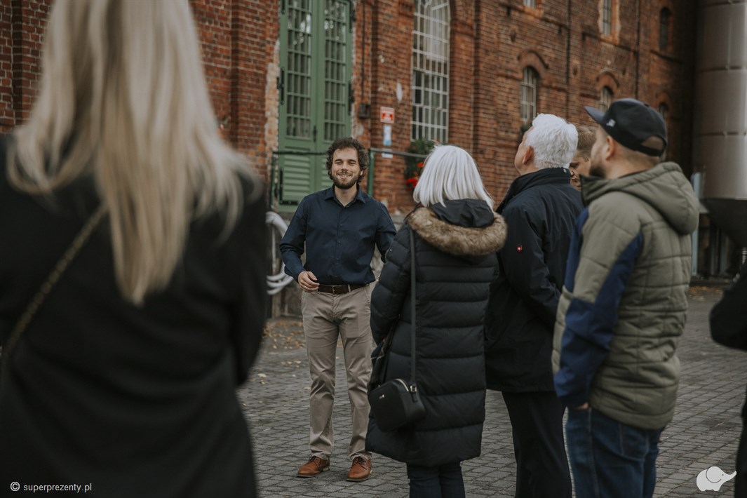 Grupa maksymalnie około 10 osób, jeżeli jest więcej organizujemy drugą turę. To względy bezpieczeństwa - gorzelnia jest stale pracującym zakładem