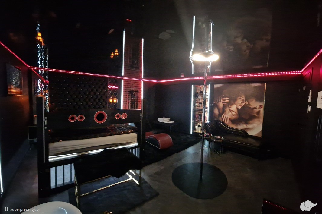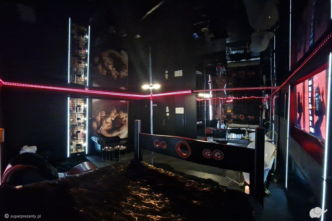 Zmysłowe wnętrze wyposażone w łóżko i wolno stojącą wannę, rurę do pol dance oraz krzesło do miłosnych igraszek tworzy uwodzicielską aurę, a wysmakowane detale obiecują spełnienie.