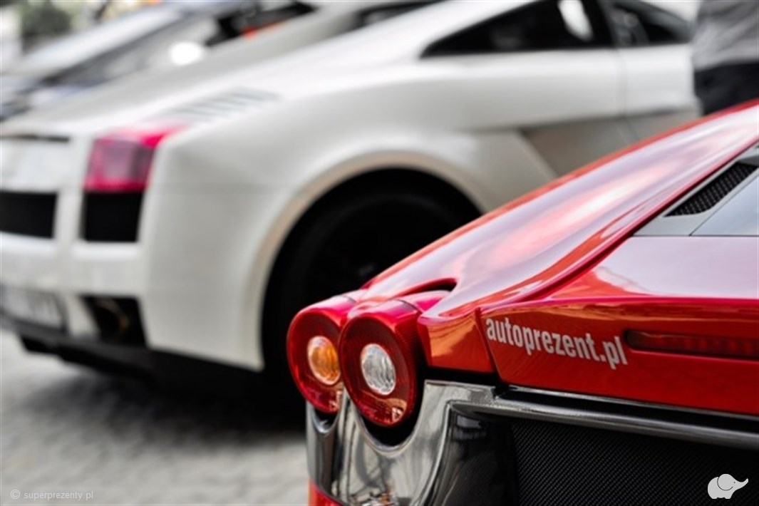 Czy wiesz, jakie danie smakuje najlepiej? Danie vouchera na motoryzacyjny pojedynek dwóch gigantów! Ferrari F430 to auto tak szybkie, że jedzie nawet wtedy, gdy stoi, jednak Gallardo się nie poddaje i eksponuje swój stalowy mięsień, jakim jest silnik o mocy 560 koni mechanicznych. Każdy samochodów zaparkował w historii motoryzacji, a obdarowana osoba może przetestować oba i wytypować zwycięzcę tego ponadczasowego starcia! Podczas gdy F430 zaskakuje mobilnością oraz konstrukcją inspirowaną sportami F1, Gallardo wyposażone w silnik V10 rozprzestrzenia się po nawierzchni toru jak rozszalały pożar, a do tego nie sposób nie wspomnieć o tym wibrującym warkocie, który podrywa serce do lotu, by przy prędkości 315 km/h zatopić umysł kierowcy w oceanie adrenaliny. Voucher na pojedynek samochodowy to wyjątkowy prezent z każdej okazji, szczególnie dla mężczyzn lub kobiet zakochanych w prędkościach przekraczających wszelkie granice.