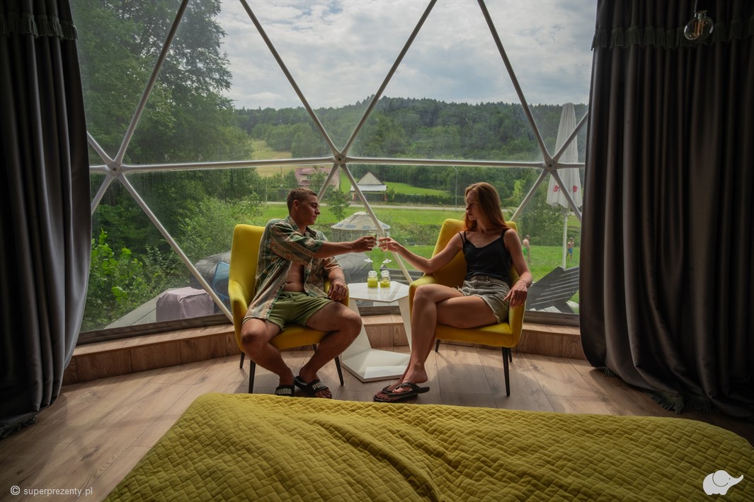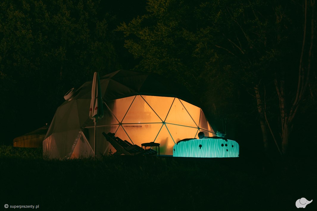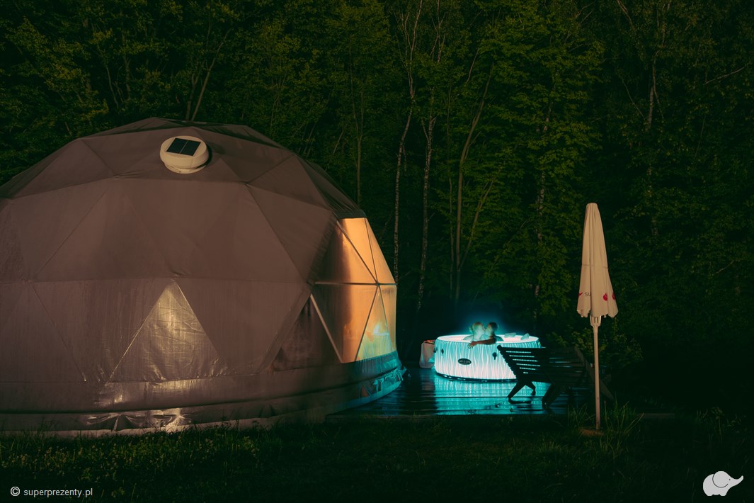Dwa noclegi w kopule sferycznej przypominającej obserwatorium doskonale wpisuje się w romantyczną wizję nocy pod gwiazdami. Tym bardziej że ten niepozorny namiot swoim standardem nie ustępuje komfortowemu apartamentowi. W Dolinie gwiazd zażyjecie także licznych atrakcji takich jak: sauna, gorąca beczka, grota solna czy basen (czynny w sezonie letnim, od kwietnia do połowy października).