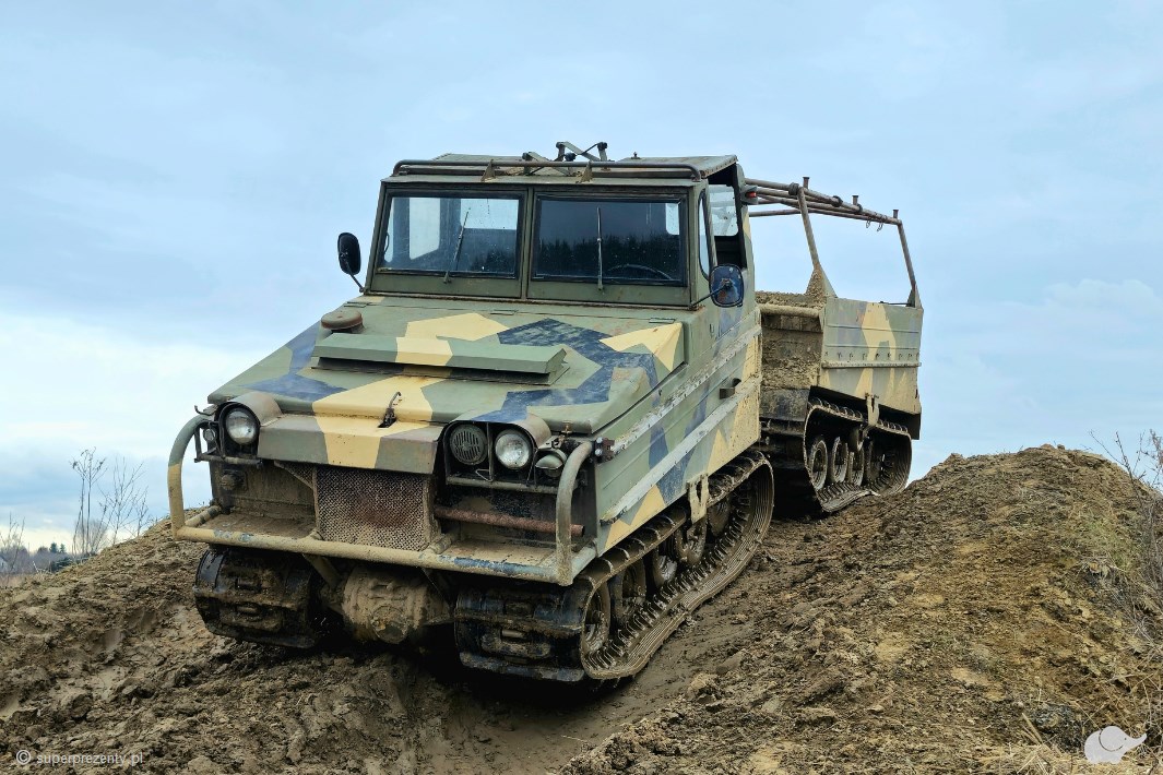 Jesteś fanem militariów, wojskowej technologii i motoryzacji? Mamy dla ciebie coś niezwykłego. To jazda amfibią Volvo BV 202. Zapewniamy, że nie da się przejść obojętnie obok tego pojazdu. Nie tylko możesz go zobaczyć, ale również przejechać się nim jako kierowca, ponieważ dajemy ci niepowtarzalną okazję do poprowadzenia tej niesamowitej maszyny. Wyrusz na ekstremalną przygodę, poczuj adrenalinę w najczystszej postaci i wyzwól ogrom emocji podczas jazdy tą niezwykłą maszyną. Spełnisz marzenie o przejażdżce prawdziwym pojazdem wojskowym