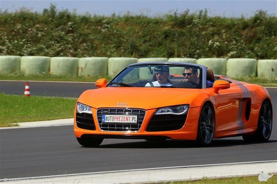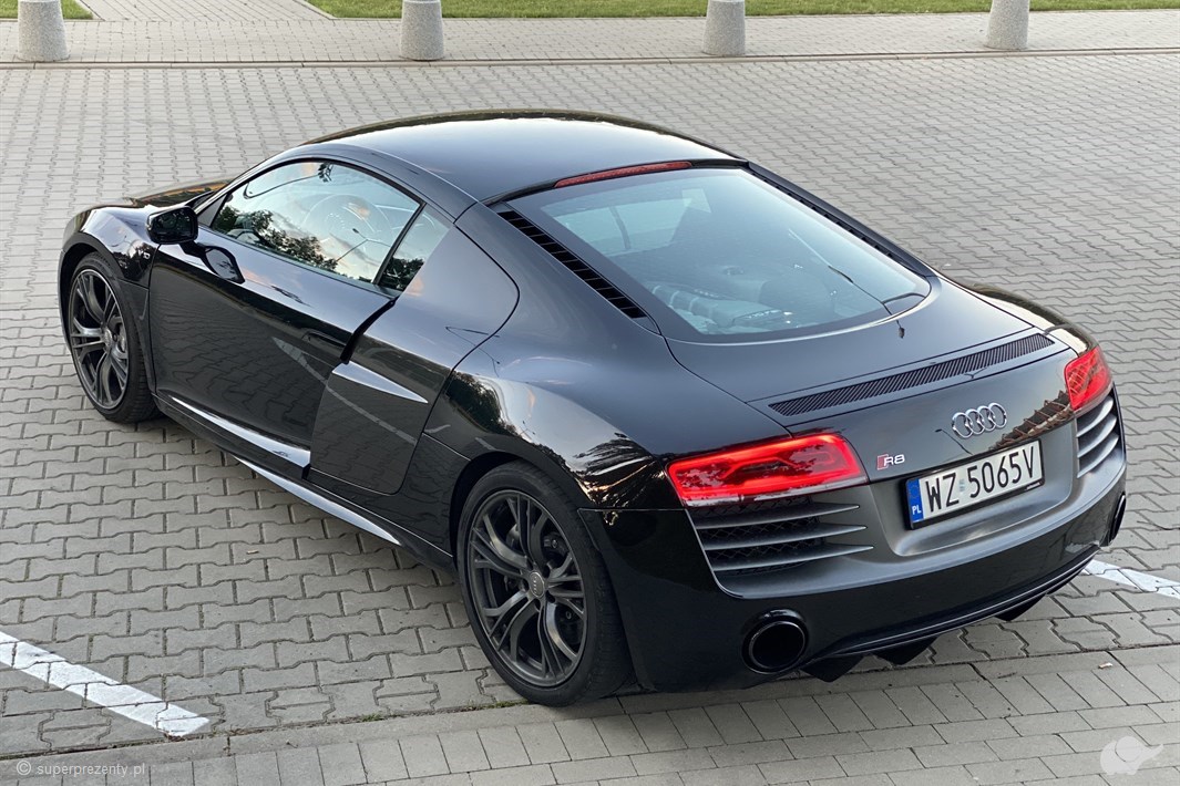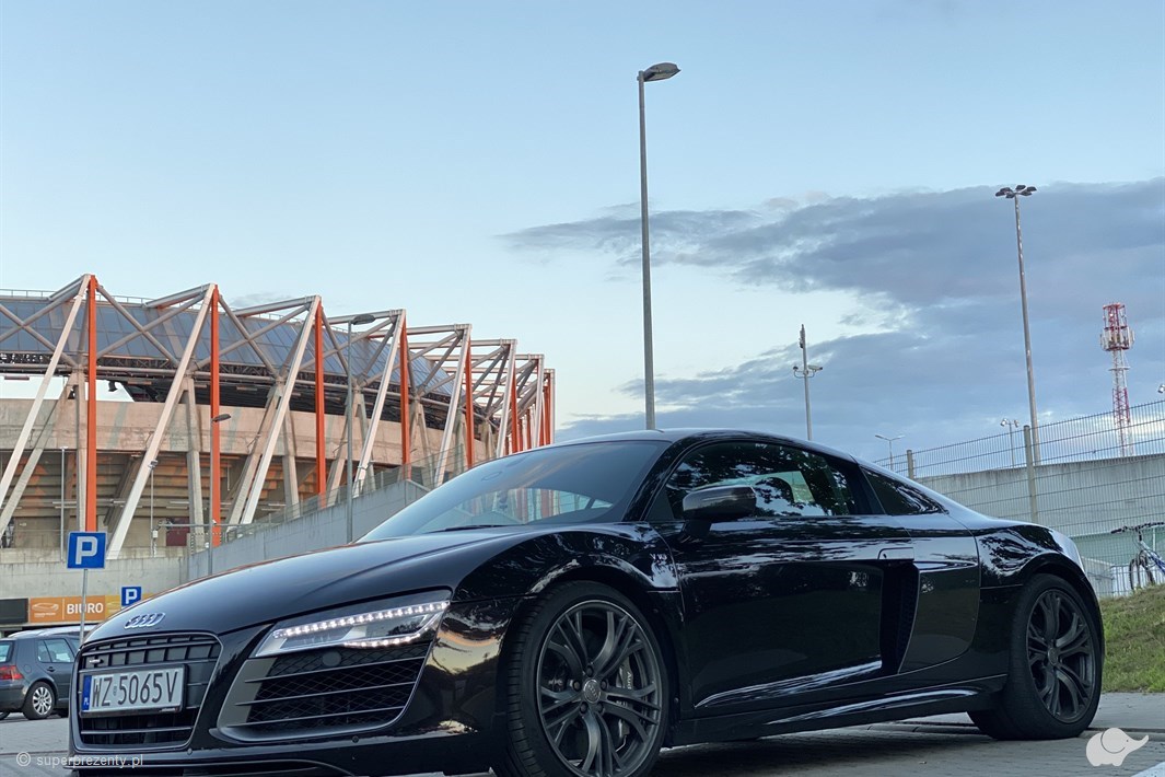 Uwolnij kogoś bliskiego od codzienności i podaruj bilet na jazdę Audi R8 V10 – istnym odkurzaczem na życiową rutynę! Ten stalowy orzeł motoryzacji mknie po torze z prędkościami, o jakich nie śniło się największym marzycielom, a jego luksusowe ciało i wygodne wnętrze podsycają radość niczym emocjonalna rozpałka dla zmysłów! Pozwól komuś bliskiemu zasiąść za kierownicą wielokrotnego zwycięzcy wyścigu LeMans! Audi R8 V10 przez wielu uważane jest za jedno z najlepszych niemieckich samochodów sportowych. Łączy on najlepsze cechy samochodów z silnikiem umieszczonym centralnie i posiada napęd na cztery koła! Voucher na jazdę tak szybkim samochodem to niemalże bilet do krainy płynącej adrenaliną, będącej idealną przestrzenią do wypróbowania 525 koni mechanicznych wydobywających się z 5,2 litrowego silnika V10!
