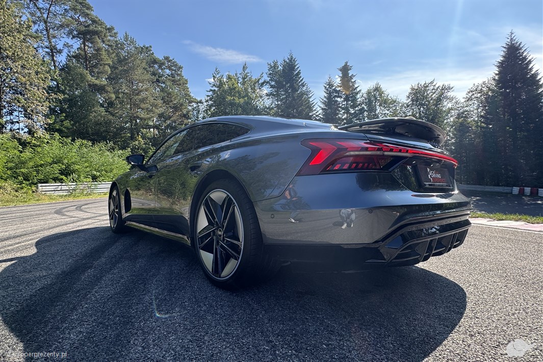 Kiedy inżynierowie Audi tworzyli elektryczne cudo, przyświecał im jeden cel: udowodnić, że przyszłość motoryzacji może być elektryzująca. E-tron GT to ich mistrzowskie dzieło – samochód, który zmienia zasady gry. Elektryk rozpędza się do 100 km/h w 4,1 sekundy, generując przy tym charakterystyczny, futurystyczny dźwięk, cichszy od naładowanego elektronami powietrza. Tak brzmi przyszłość! Na profesjonalnym torze wyścigowym bliska Ci osoba uchwyci jej pochodną – płynne, wciskające w fotel przyspieszenie. A będzie to dopiero początek sportowej jazdy!