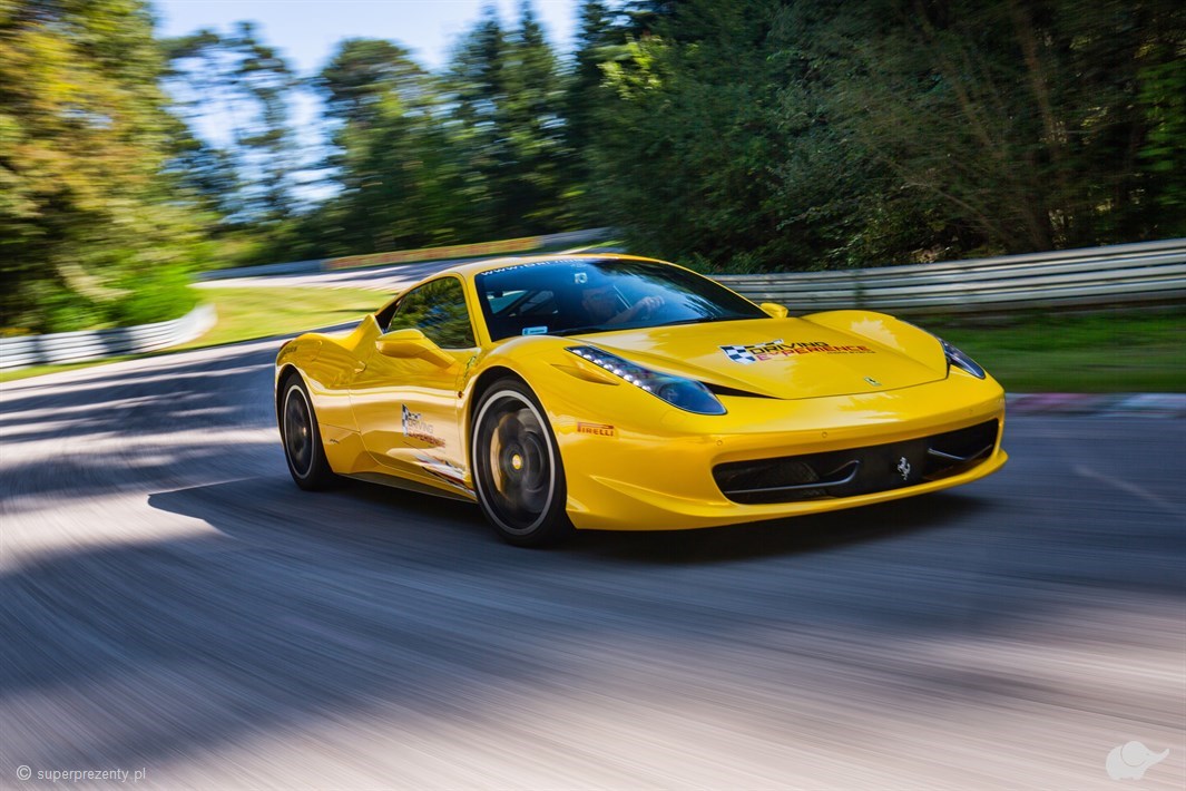 Wraz z voucherem na jazdę Ferrari 458 Italia po toruńskim torze podarujesz bliskiej osobie perspektywę doznania maksymalnych emocji! Ten poskramiacz torów oszołomi odbiorcę prezentu znakomitymi osiągami, które idą w parze z bajecznym komfortem prowadzenia oraz poczuciem prestiżu – w końcu mowa o super aucie będącym wzorem dla wszystkich innych marek w branży motoryzacyjnej!