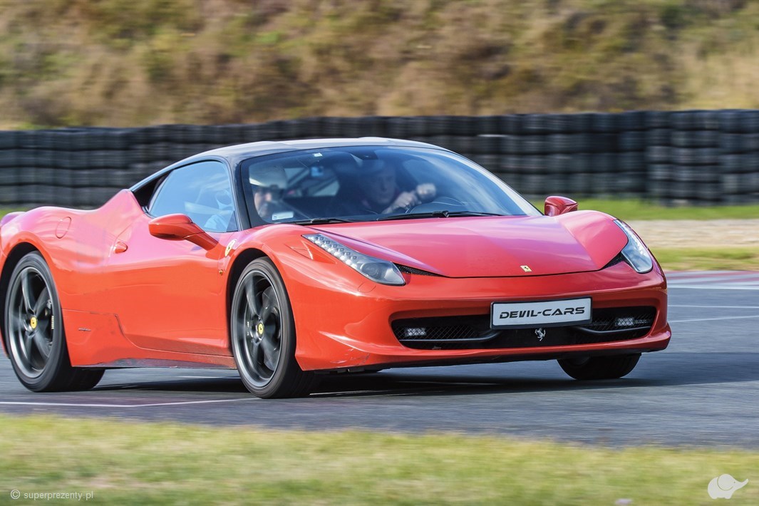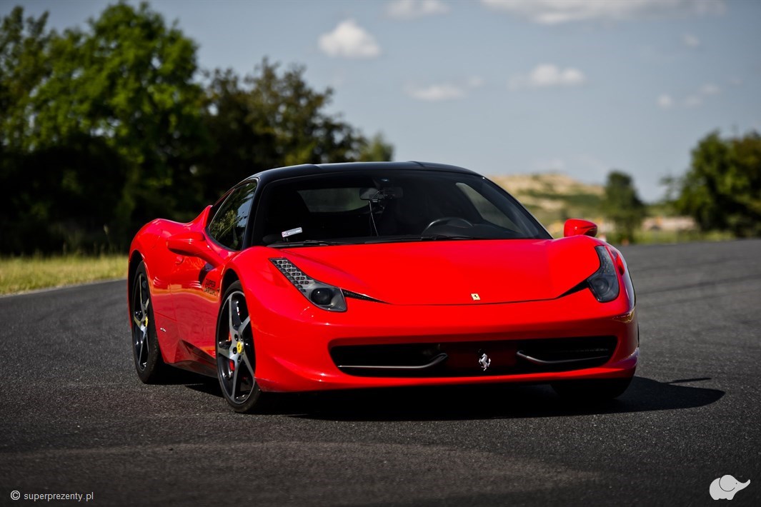 Przedstawiamy samochód, który prędkość bierze sobie do serca w dosłownym znaczeniu, ponieważ to właśnie niezawodny, legendarny już silnik znajduje się pod ożebrowaniem tego ikonicznego kosiarza torów, będąc punktem zapalnym potęgi Ferrari. 570 koni mechanicznych czyni tego potwora tak niesamowicie szybkim, że z perspektywy obserwatora widać jedynie czerwony flamaster na kołach, wypełniający kolorem czarną nawierzchnię toru. Silnik V8 oraz prekursorska budowa nadwozia łączą siły, aby pogodzić aerodynamikę jazdy z osiągami, natomiast charakterystyczny warkot przetyka uszy skuteczniej niż najlepszy otolaryngolog. Wręcz ten niezwykły prezent prawdziwemu zapaleńcowi superszybkich pojazdów, a przekona się, że nie ma takiego zakrętu, którego nie wyprostuje Ferrari F458!
