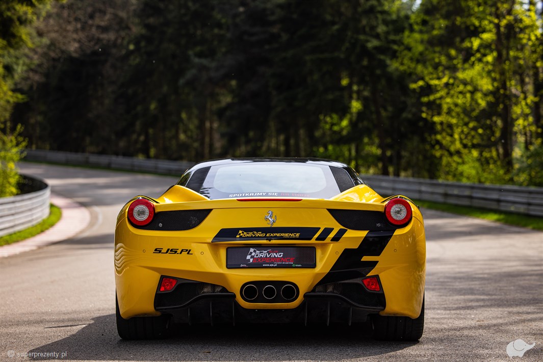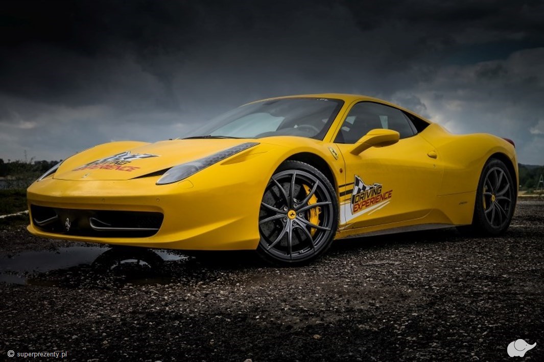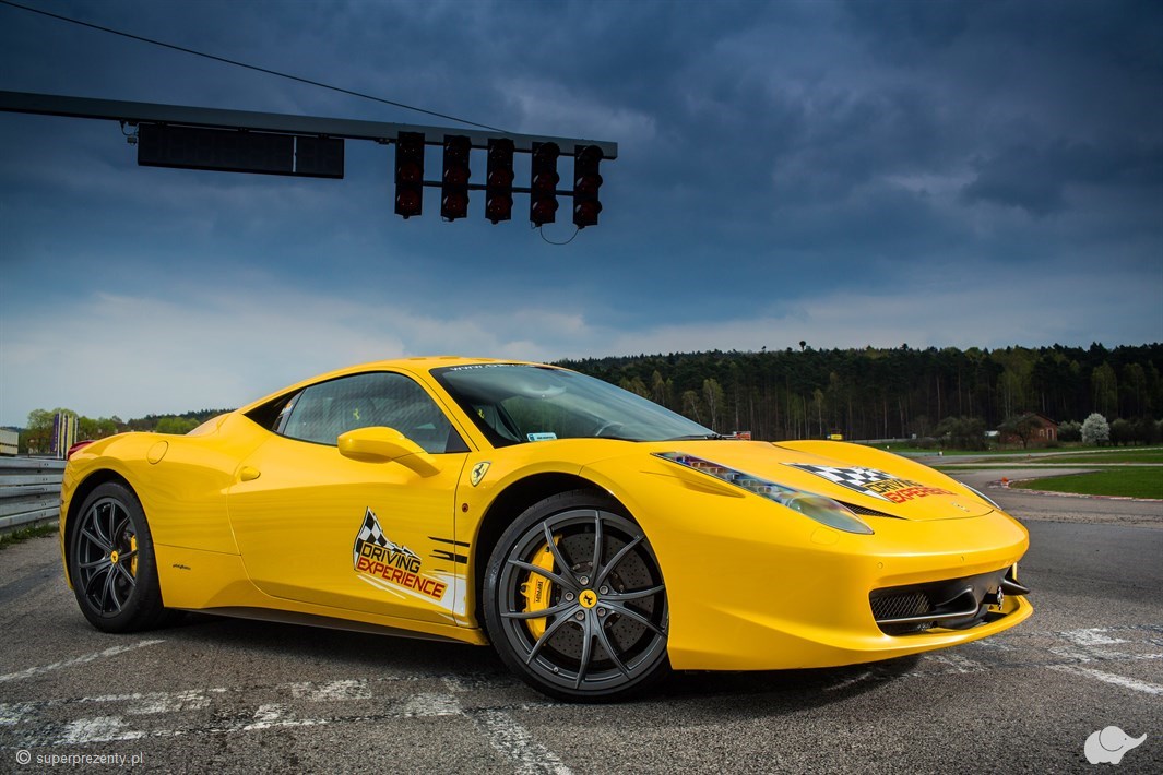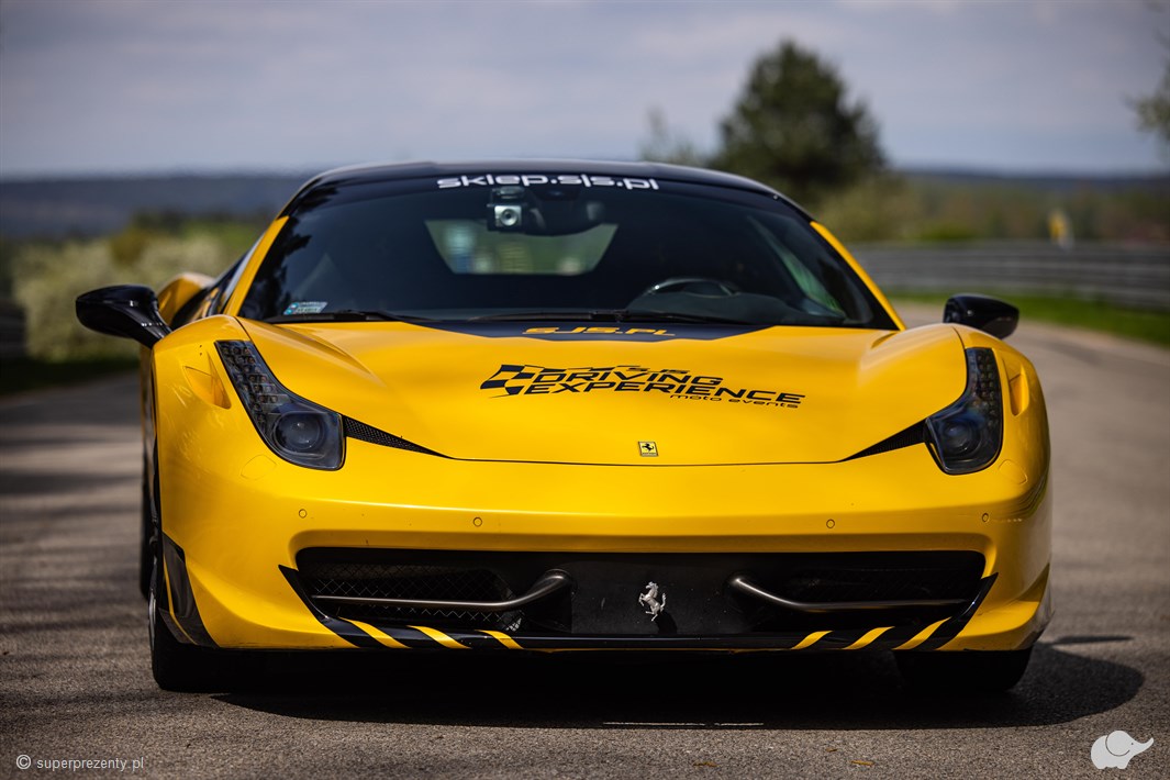 Podaruj emocje skompresowane w legendarnym Ferrari 458 Italia. Niech bliska osoba podda się bezmiarowi szaleństwa i zedrze nawierzchnię kołami tego żółtego potwora. Żądasz liczb? To sto procent emocji, 300 km/h i zero nudy! Ten topazowy atleta o epickim wyglądzie dowodzi, że czas zatrzymuje się po zamknięciu zegarów, co wcale nie jest takie trudne! Biorąc pod uwagę, że pod maską superszybkiego Ferrari spoczywa silnik V8 o mocy 570 koni mechanicznych, osiąganie rekordów prędkości nie jest wielkim wysiłkiem. Pozwól bliskiej osobie przekonać się, że jazda po torze w środku tak sławnego wyzwalacza adrenaliny skutkuje permanentnym uśmiechem i wspomnieniami, których nie da się zastąpić kinem, kebabem ani perfumami! Voucher na jazdę Ferrari to zupełnie inny rodzaj obdarowywania!