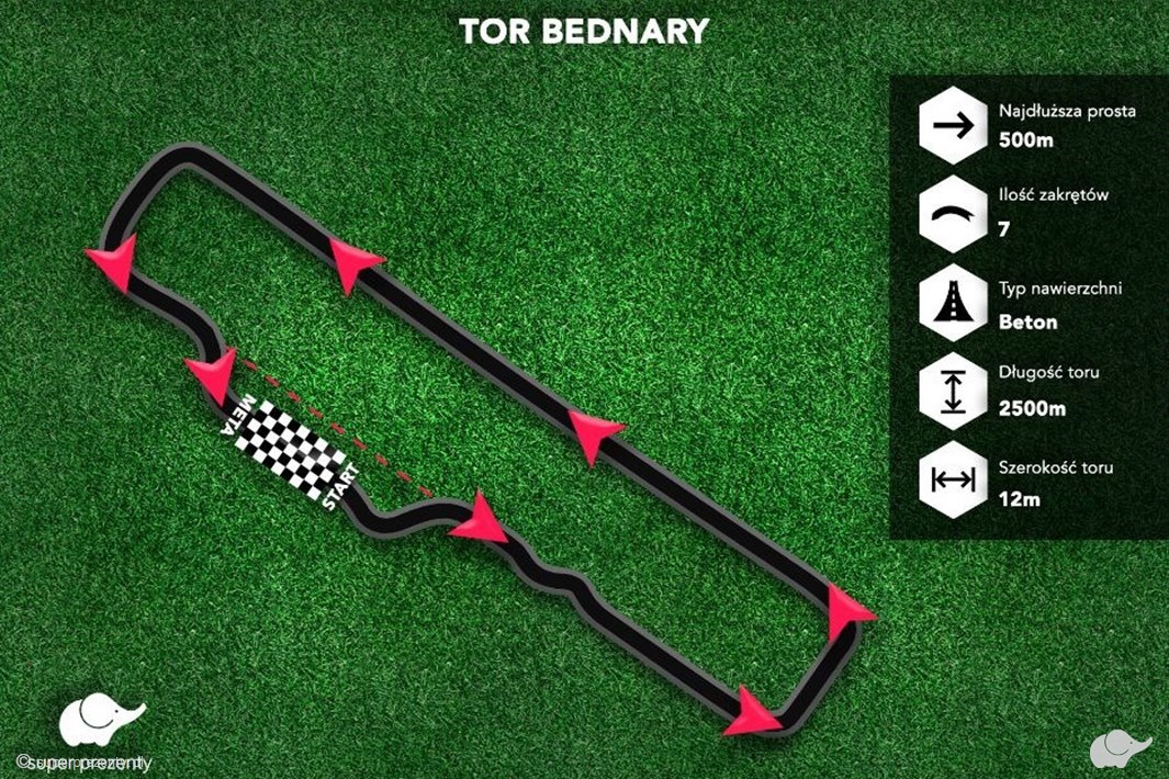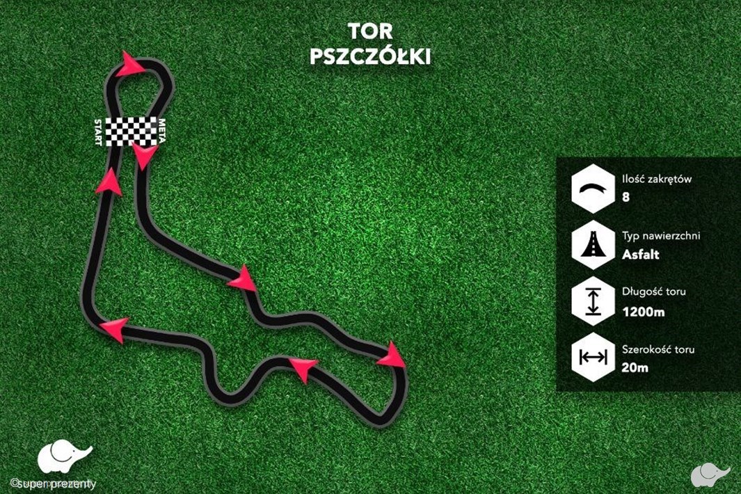 Tor posiada długość 1200m. Na czas jazdy jednego okrążenia wpływa styl jazdy i umiejętności kierowcy.