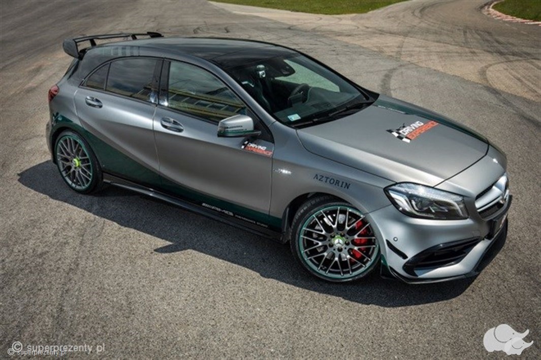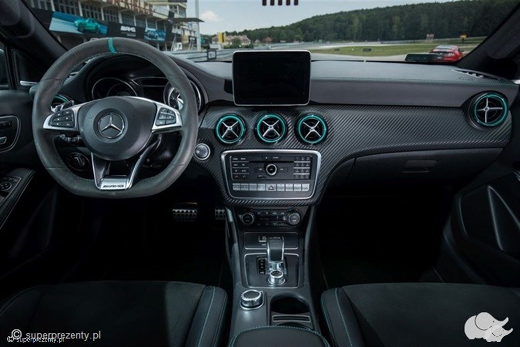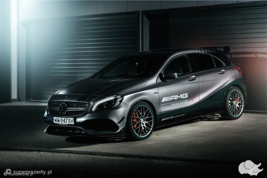 Pora na wielki motoryzacyjny wybuch, ponieważ Mercedes A45 AMG to istna petarda na kołach! Pod niepozornym designem tego grafitowego pięknisia kryją się roztańczone języki emocjonalnej pożogi, a jego luksusowe wnętrze idealnie zazębia potrzebę kunsztu oraz fascynujących uniesień! 360 koni mechanicznych i czterocylindrowy silnik turbo – to powody, dla których bliska osoba odwdzięczy się szczerym uśmiechem, a krzyk będzie dowodem totalnego odjazdu! W Mercedesie A45 wszystko wydaje się zaplanowane – spoiler ulokowany z tyłu dociska tylną część pokaźnego nadwozia, nadając pojazdowi odpowiedniej przyczepności, turbosprężarka dodaje mocy, będąc tym samym nieopisanym źródłem dodatkowej prędkości na torze, a rasowe brzemiennie wylewające się spod jego maski odstrasza cienie codziennych zgryzot! Niesamowity jest fakt, że choć model A45 wygląda na masywny pojazd, to waży jedyne 1.5 tony, co w przełożeniu na język motoryzacji czyni go sportowcem o sylwetce dopasowanej do swojego wyścigowego charakteru. Pragniesz uszczęśliwiać! Odstaw alkohol na sklepową półkę i sięgnij po voucher na jazdę Mercedesem A45!