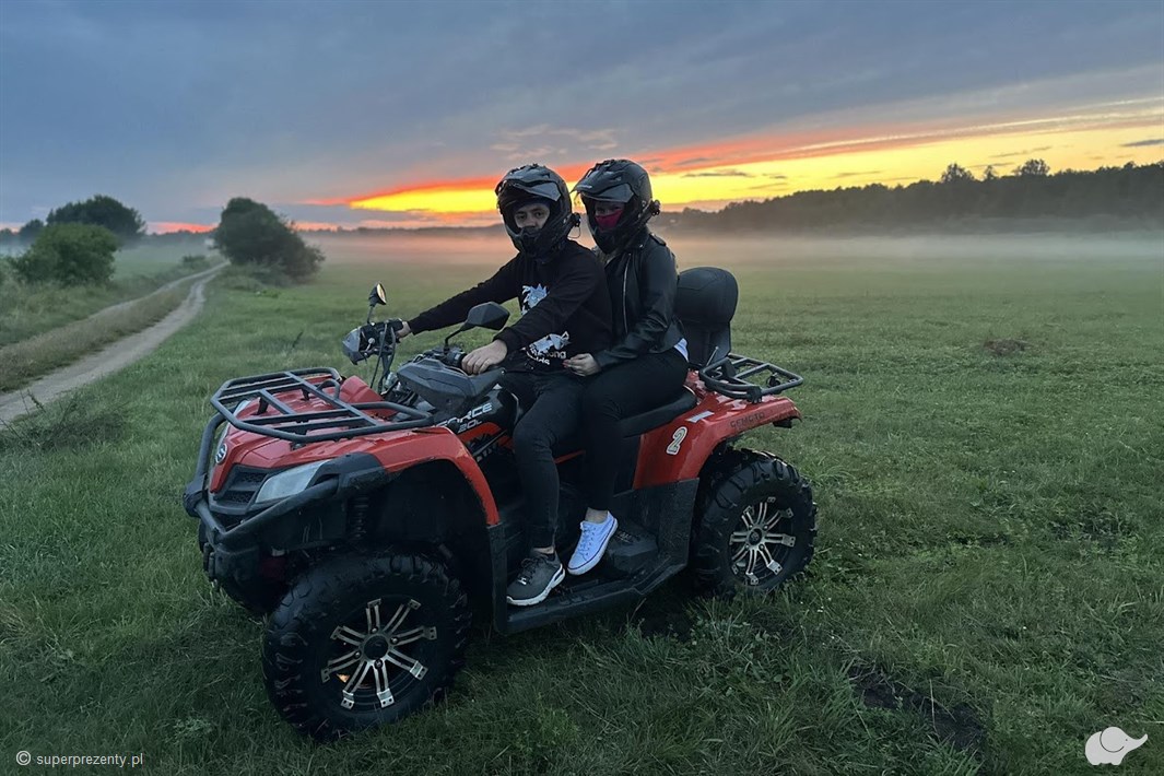 Przed Wami ekstremalna jazda w duecie! Wspólnie odkryjecie uroki Doliny Narwi, przemierzając leśne ścieżki, łąki i piaszczyste wydmy. Voucher na jazdę quadem dla dwojga to ciekawe przeżycie dla pary, przyjaciół lub bliskich, którzy lubią aktywny wypoczynek i nie boją się ubrudzić. Start odbywa się z bazy QuadXtreme w Murawach – 10 km od Łomży, w otoczeniu natury i dzikich krajobrazów.