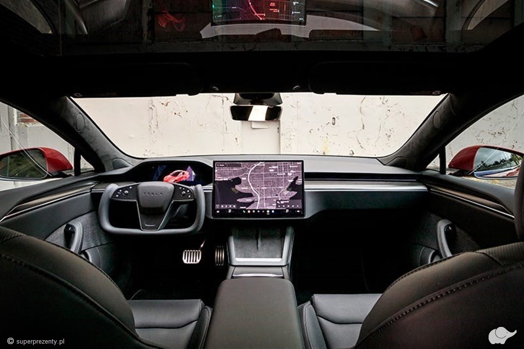 Tesla Model S Plaid została wyposażona w najbardziej zaawansowaną na rynku motoryzacyjnym technologię. Zbudowane z włókna węglowego silniki są lekkie (ponoć można je bez problemu unieść) i osiągają do 20 000 obr./min. Poprawiona bryła nadwozia ma niezwykle niski współczynnik oporu aerodynamicznego: 0,208. Teslę poprowadzisz przy pomocy wolantu, który współpracuje z autopilotem i nie ogranicza widoczności.
