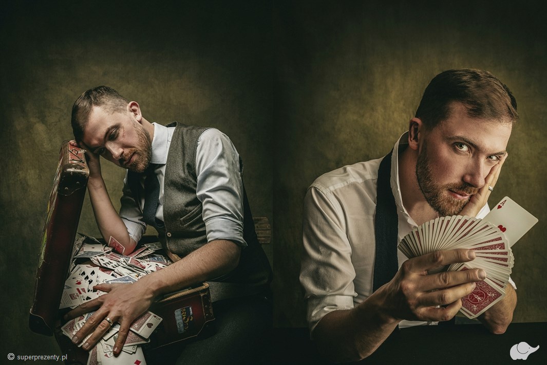 Podaruj bliskiej osobie odrobinę magii, wręczając jej voucher na pokaz iluzji karcianej pt. „Karty na stół”.