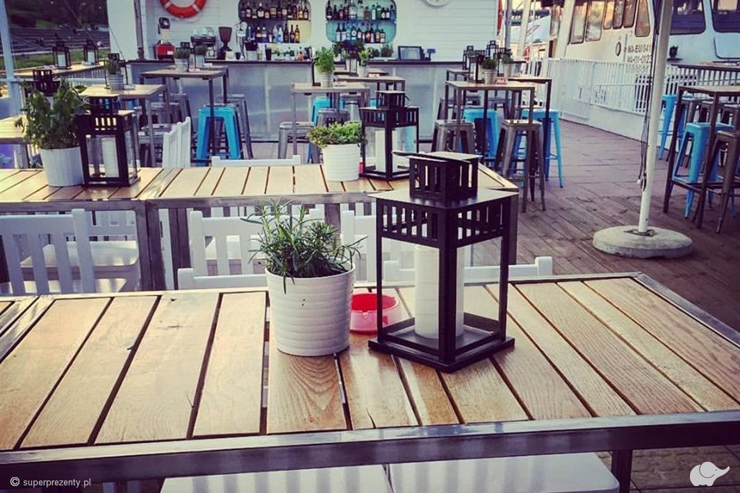 Banały codzienności nie potrafią pływać. Cóż, wygląda na to, ze tym razem obejdą się smakiem, za to Wy rozpieścicie nim swoje podniebienia! Najromantyczniejsze słowa kształtują się w żołądkach pogłaskanych pysznym jedzeniem, zatem wejdźcie na pokład prawdziwej gastronomicznej ekstazy. Kolacja na statku wtłacza szczyptę świeżości do umysłów zawieszonych między widmem trosk a otchłanią powinności. Tutaj szafirowa szata Wisły odzieje zmysły liryką spokoju, a aromat i smak potraw przygotowanych przez warszawskich mistrzów kuchni uczyni Was wolnymi w czasach wszechobecnego pędu. Sezonowe menu czyni kolację z rejsem oryginalną przygodą, a powtarzanie jej w przyszłości owocuje innymi wrażeniami smakowymi, co nie pozwala na choćby strzęp nudy! Części restauracyjna, koktajlowa oraz chill&pizza zagwarantują Wam różnorodność, a bajeczny pejzaż pomoże wydobyć to, co ciężko opisać zwykłymi słowami.