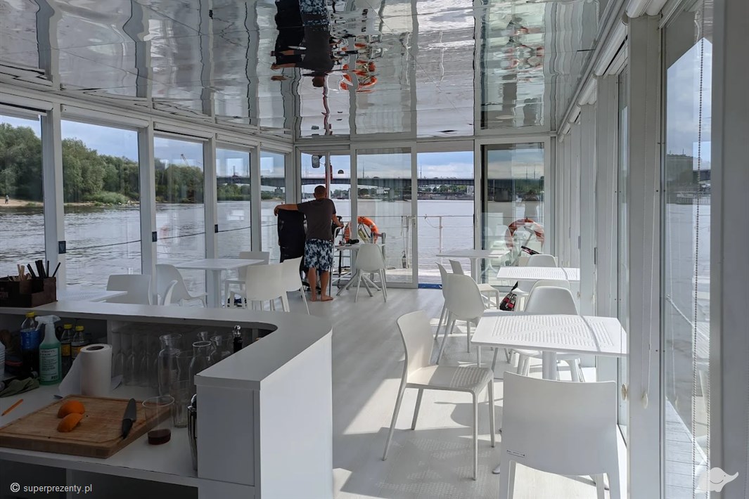 Kolacja na Wiśle to niezapomniany rejs podczas którego zjesz kolację z widokiem na słońce zachodzące nad Warszawą. W ramach kolacji serwowana jest pyszna deskę tapasów z Przystani Nowa Fala (jedna deska na dwie osoby) butelkę wina lub prosseco (butelka na 4 osoby) oraz lemoniadę, wodę, herbatę i kawę.