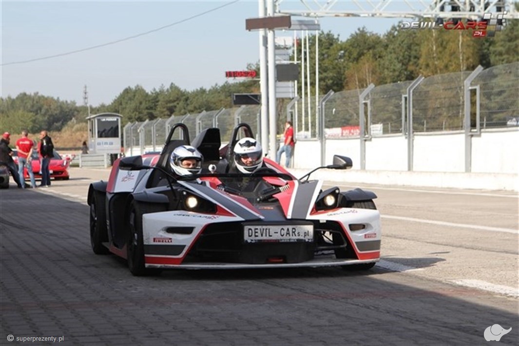 KTM X-Bow szokuje podwójnie. Gdy widzi się tę niewielką konstrukcję, trudno uwierzyć w jego wyścigowy rodowód. Kierowcy zmieniają zdanie przeważnie wtedy, gdy silnik wyposażony w turbosprężarkę rozpędza tego skrzata do prędkości, jakich nie osiągnie 80% pojazdów na świecie! Niska masa w połączeniu z podjednostkami o ogromnej mocy czyni go zabójczo skutecznym przy pałaszowaniu torów!