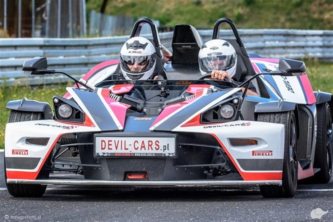 KTM X-Bow to z kolei gwiazda innego formatu. Enigmatyczny wygląd KTM-a przypomina delikatnie Formułę 1, choć nie do końca nią jest; twórcy jedynie inspirowali się tym typem konstrukcji. Dziwak z niebywale niską masą i wręcz nieproporcjonalnym silniku o mocy 240 KM bije rekordy torów niczym rozwścieczony chuligan, a przyspieszeniem do „setki” udowadnia, że jest w tym pojedynku oponentem tak samo trudnym, jak i tajemniczym. Voucher na jazdę tymi dwoma samochodami to pomysłowy prezent na urodziny lub święta!