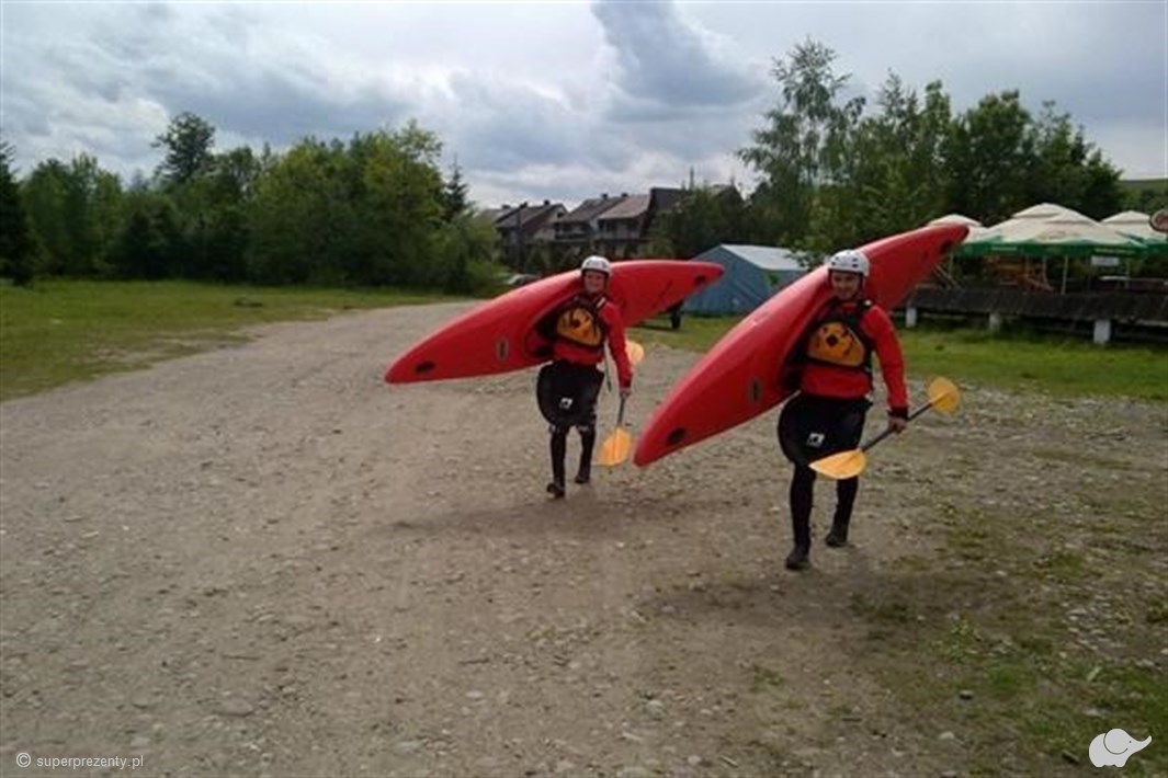 - sprzęt: kajak górski, kamizelka asekuracyjna, kask, wiosło, fartuch, odzież ochronna: pianka neoprenowa, obuwie ochronne neoprenowe (w przypadku braku pogody),