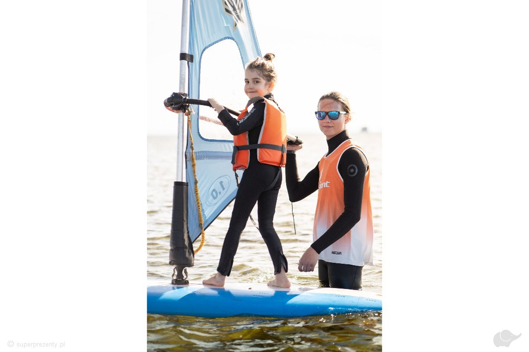 Windsurfing to przyjemny i prosty sport nie wymagający specjalnych predyspozycji fizycznych. Pływać może praktycznie każdy. Uczymy nawet 5 letnie szkraby, a górna granica wieku nie istnieje! Bezpłatne godziny wypożyczeń będziesz mógł wykorzystać na doskonalenie umiejętności poznanych podczas zajęć z instruktorem. Gwarantujemy, że już w ciągu pierwszej lekcji będziesz płynął na desce, a po 3 godzinach opanujesz już podstawy i będziesz mógł samodzielnie rozkoszować się windsurfingiem:)