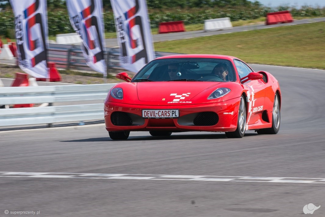 To jednak ledwie przystawka, bo chwilę później wjeżdża danie główne – Ferrari F430, który pałaszuje tor już samym rubinem swojej legendarnej aury. Ten gwiazdor motoryzacji posiada trzewia tak mocne, że gdyby był rycerzem, nie potrzebowałby zbroi. Silnik V8 jest klasą samą w sobie, a wszystkiemu dogrywa wspaniała budowa, nadająca temu cerberowi zarówno ponętny wygląd, jak i aerodynamikę potrzebną do sprawnego poruszania się po torze.