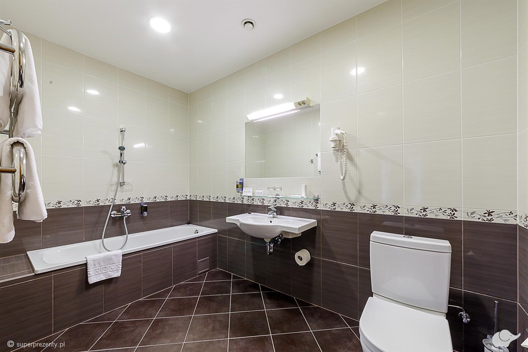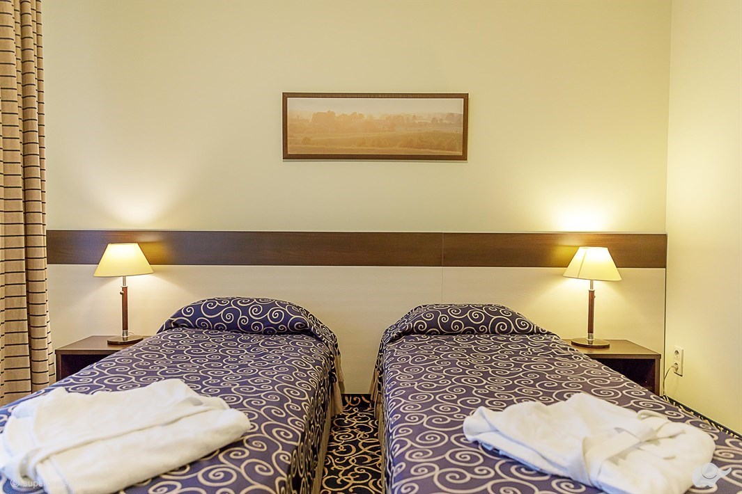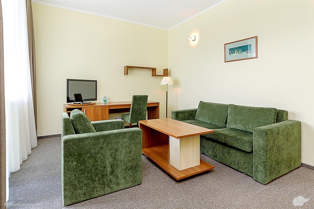 Voucher dedykowany jest dla dwóch osób i pozwala im spędzić dwie noce w pokoju typu standard. Do ich użytku będą wyremontowane, przestronne pokoje z łatwym dostępem do stref zabiegów (uzdrowiskowych) i sklepiku m.in. z wodą mineralną. Atmosfera ośrodka sprzyja temu, by poruszać się po nim w szlafroku (oczywiście nie ma takiego obowiązku). Stołówka z nieograniczonym dostępem do śniadań, obiadów i kolacji oraz przekąsek między nimi znajduje się w oddzielnym budynku.