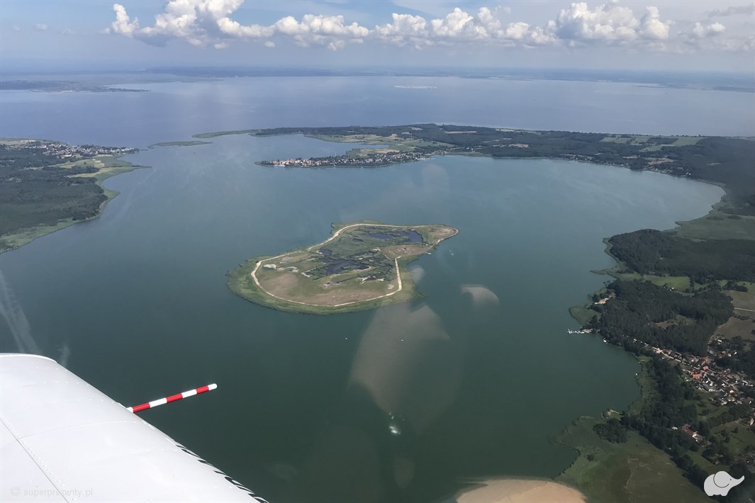 Lot nad Pomorzem Zachodnim trwa godzinę, ale zostaje w głowie znacznie dłużej. Trasa zaczyna się od pełnego okrążenia Szczecina i Jeziora Dąbie, prowadzi nad rozległym Zalewem Szczecińskim, gdzie sztuczne wyspy i kanały żeglugowe tworzą geometryczny labirynt wokół portu Police. Dalej – Wyspa Wolin: spotkanie Bałtyku z rozlewiskami Odry, dzikie wybrzeże i zielone masy Wolińskiego Parku Narodowego. Doświadczony pilot poprowadzi lot przez pełne spektrum krajobrazów – od miejskiej zabudowy po nadmorską dziką przyrodę!
