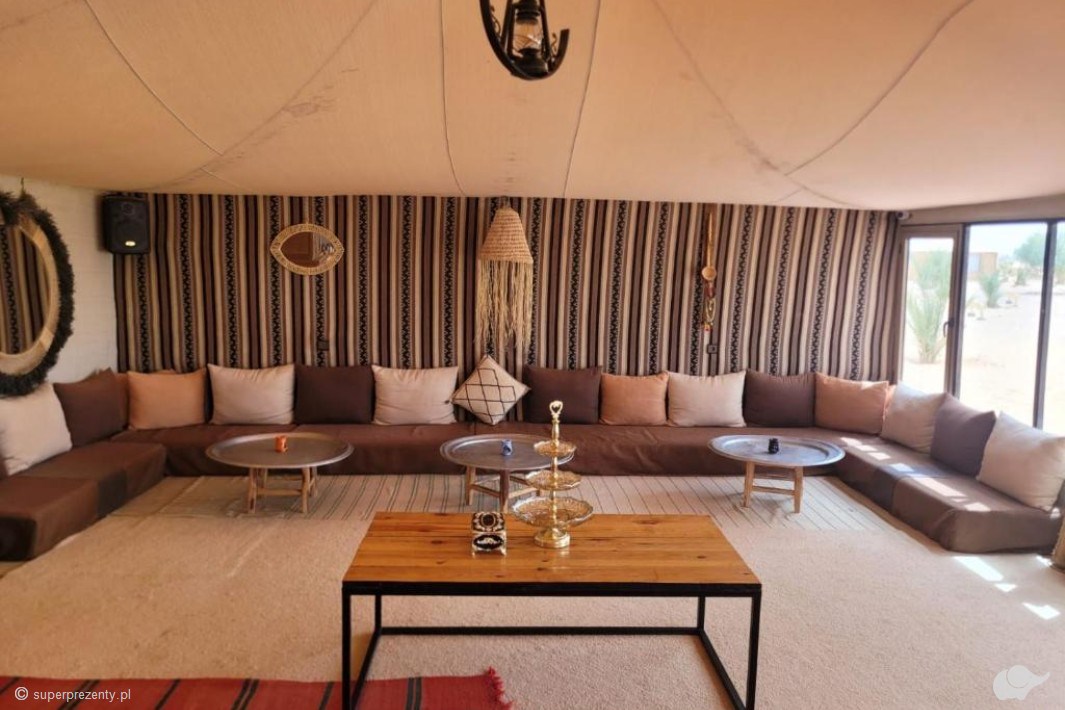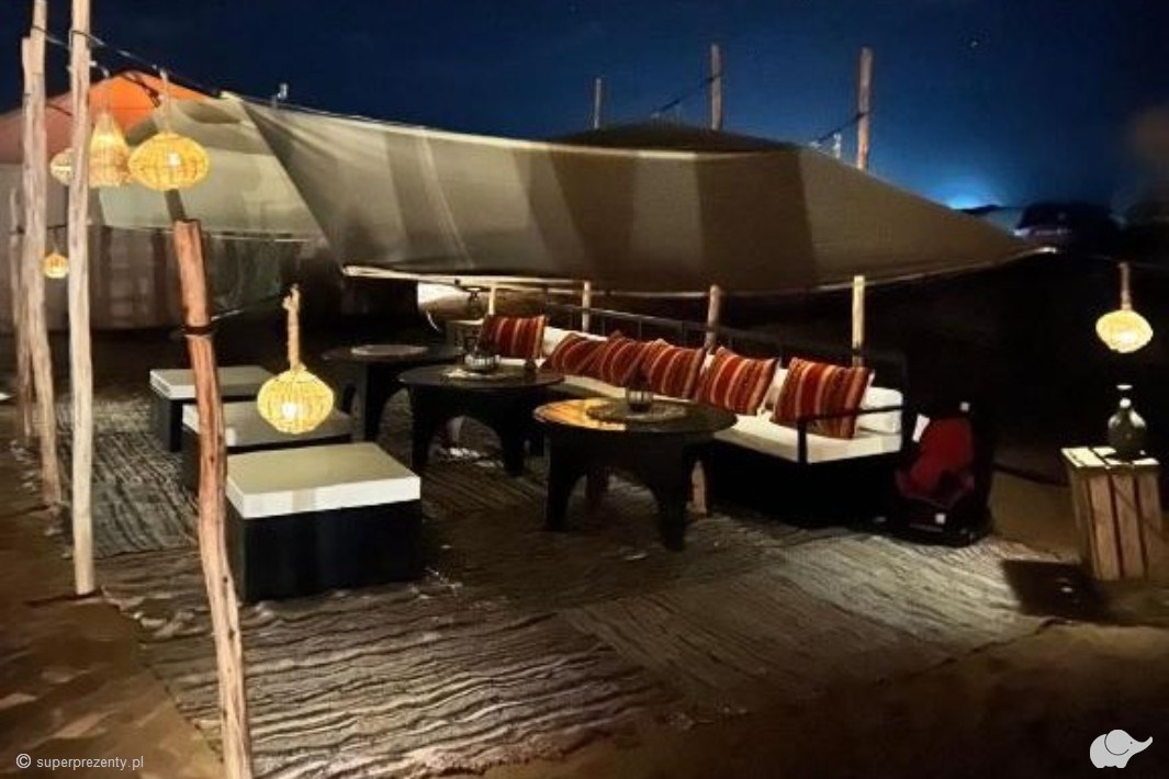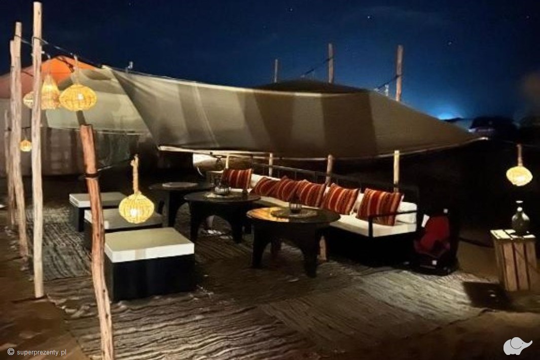 - pustynny luksus – pobyt w przestronnym namiocie Deluxe z klimatyzacją i prywatną łazienką,