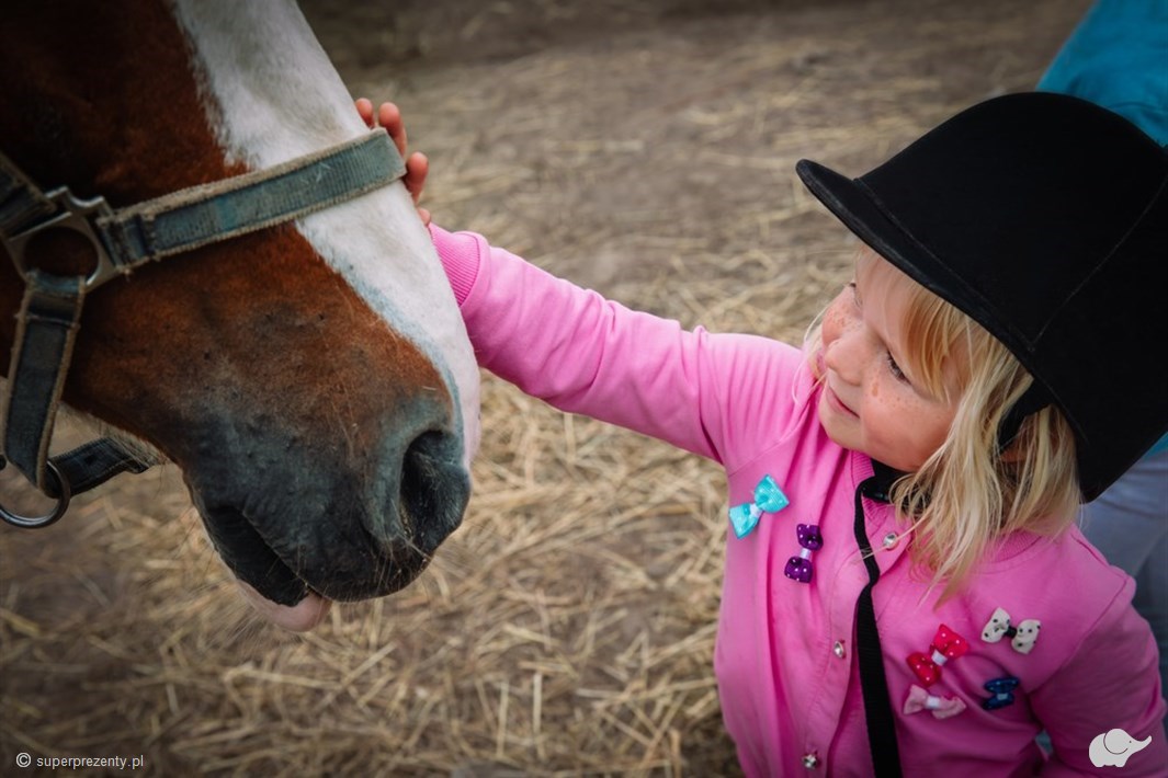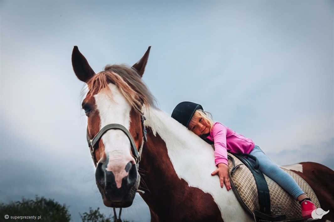 Umysł dziecka to czysta tablica, którą dzięki Super Prezentowi możesz zapisać wartościowymi treściami! Wzmocnij więzy miłości między Twoją latoroślą a koniem – najszlachetniejszą i jedną z najinteligentniejszych istot, które zrodziła matka ziemia. Jazda rekreacyjna, którą odbędzie na małym koniu, wprowadzi małego człowieka do krainy wielkiej przygody. Farma Pony to ludzie kochający wszystko, co związane z naturą. Wysoki poziom troski o tutejsze konie sprawia, że te cuda na kopytach zagalopują na sam szczyt najpiękniejszych doświadczeń. Jeżeli pragniesz, aby Twoje dziecko zaznajomiło się z przyrodą rozpościerającą swoje ramiona po pięknej okolicy, a przy tym zależy Ci na wtłoczeniu w umysł latorośli empatii oraz miłości do zwierząt – jazda konna w obecności instruktora wydaje się być perfekcyjnym wyborem. Połącz sport, pasję i zainteresowanie przyrodą, by złożyć w dłonie ukochanego dziecka cały bukiet niesamowitych doznań!