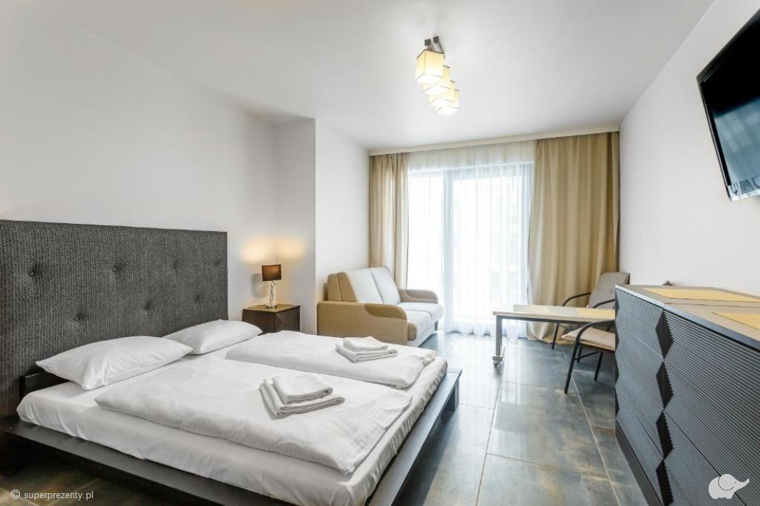 A może wypoczynek na północno-zachodnim krańcu Polski w uroczych Międzyzdrojach? Dedykowany mu voucher kwotowy wykorzystacie na usługi hotelowe obiektu Balticus Apartamenty Promenada Gwiazd 14. Każdy z oferowanych przez ośrodek pokojów posiada aneks kuchenny i prywatną łazienkę z prysznicem. Znajdziecie w nim także lodówkę, płytę kuchenną i czajnik. W przypadku niesprzyjającej pogody czas umili Wam kablówka i nieograniczony bezpłatny dostęp do W-Fi. Apartament posiada wyjście na balkon z pięknym widokiem. Obiektu oferuje Wam również dostęp do prywatnego parkingu.