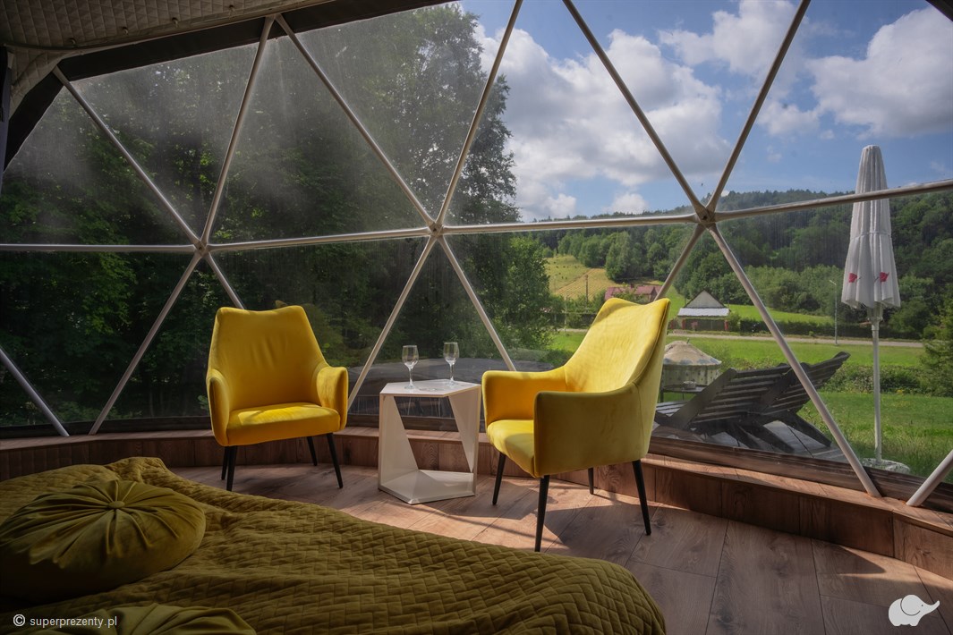 W kopule sferycznej panują doskonałe warunki do głęboko relaksującego wypoczynku. Futurystyczny z wyglądu namiot ma standard apartamentu, a dodatkowe atrakcje, jak sauna, gorąca beczka, grota solna czy basen (czynny w sezonie letnim, od kwietnia do połowy października), umilą czas nawet najbardziej wymagającym podróżnikom. Podczas pobytu nie musisz się o nic martwić – czekają na Ciebie smaczne śniadania i obiadokolacje. Po prostu rozkoszuj się luksusem, chłonąc ciszę pod rozgwieżdżonym bieszczadzkim niebem.