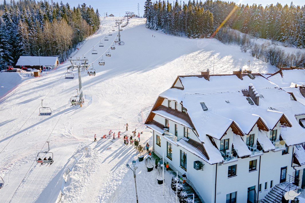 W pobliżu ośrodka znajdują się cztery trasy zjazdowe o różnych długościach i stopniach trudności. Działają one od rana do wieczora, niezależnie od pogody – są oświetlane i dośnieżane, gdy zachodzi taka potrzeba. Na wzniesienie wysokie (137 m) dostaniecie się nowoczesną 4-osobową kolejką krzesełkową o długości 720 m. Jeżeli jeździcie na nartach lub snowboardzie na górę możecie dostać się także wyciągiem orczykowych (260 m), a dla dzieci działa również wyciąg taśmowy (80 m).