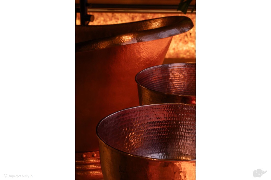 Podczas tego niezwykłego rytuału, osoba obdarowana rozpocznie swoje doświadczenie w łaźni parowej, gdzie ciepło i para przygotują ciało do dalszych etapów zabiegu. Następnie skóra zostanie delikatnie oczyszczona peelingiem, wykonanym na ciepłym stole. Kolejnym etapem będzie głęboko relaksujący masaż całego ciała, przy użyciu naturalnych produktów bogatych w ziołowe i mineralne składniki pochodzące z Uzdrowiska Ustroń. Zabieg zakończy się odprężającą kąpielą w miedzianej wannie, która dodatkowo nawilży i odżywi skórę, pozostawiając ją jedwabiście gładką.