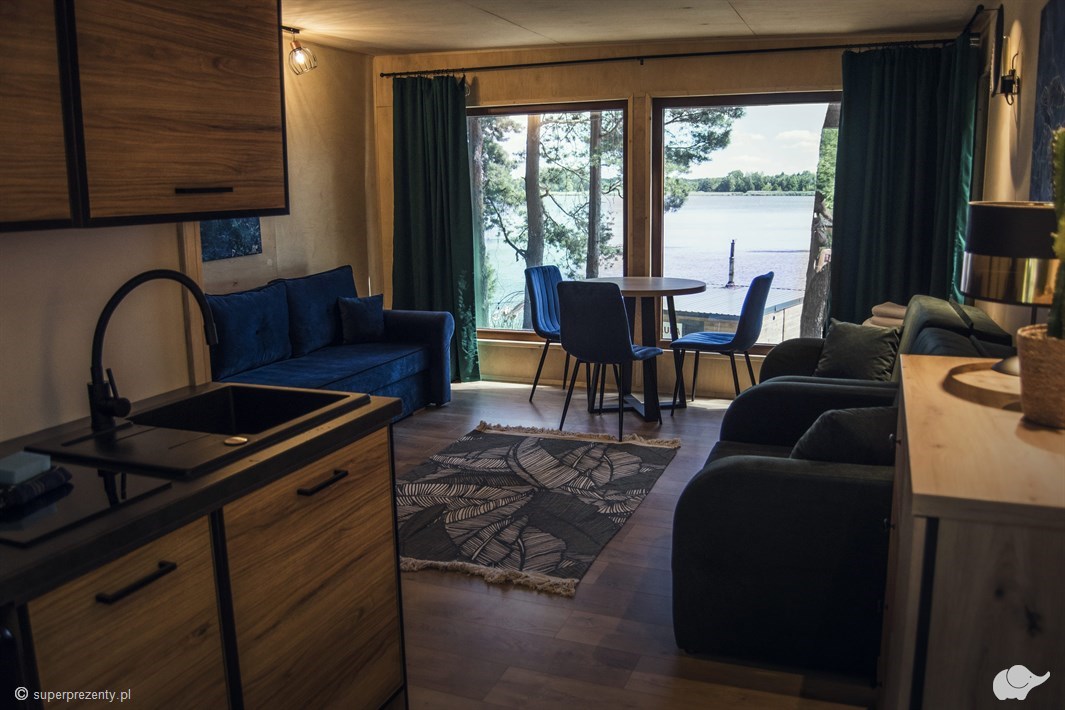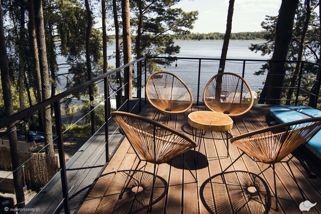 Obdarowaną parę obudzi śpiew ptaków i ukoi rozciągający się za oknami widok na rzekę i zielony las. Pobyt w domku na drzewie w kompleksie wypoczynkowym Nad Narvią to okazja, by zwolnić tempo, cieszyć się bliskością natury i odpocząć w komfortowych warunkach. To miejsce, które harmonijnie łączy nowoczesny design z bujnością przyrody, oferując niezapomniane chwile w otoczeniu drzew i rzeki.