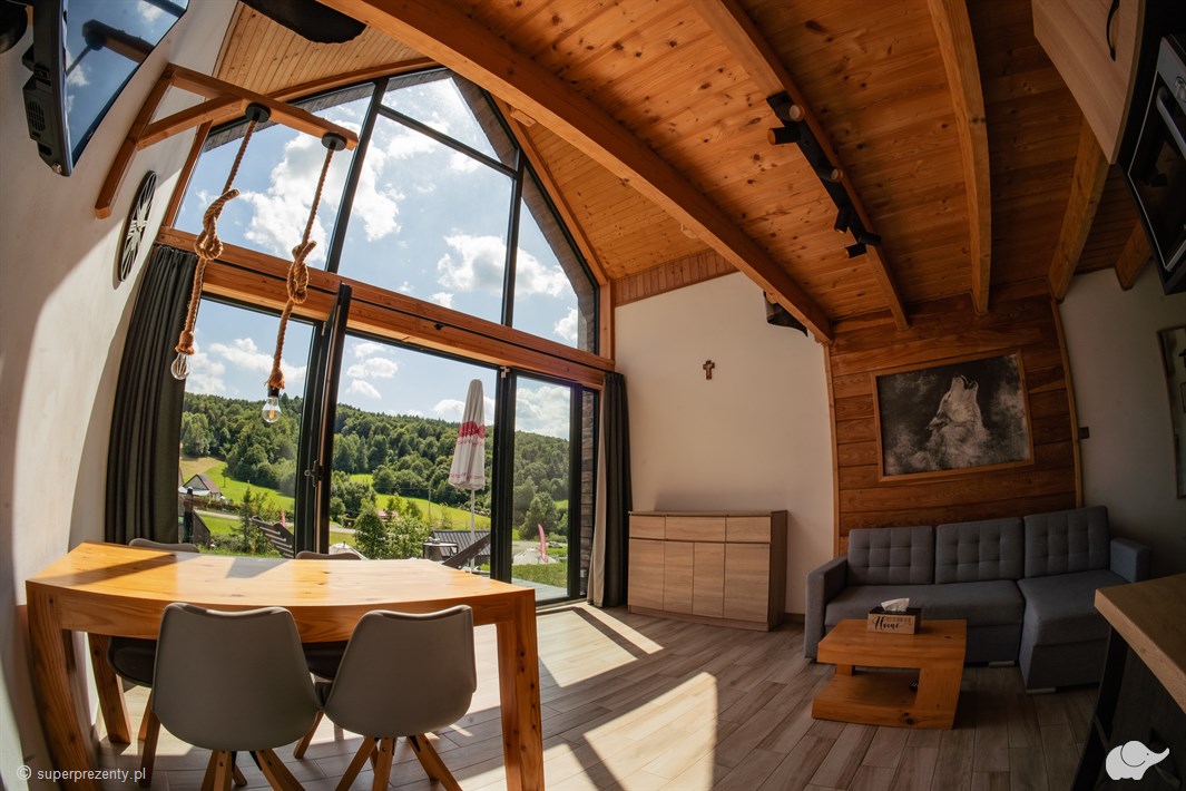 Luksus, choć widoczny jeszcze przed otwarciem drzwi, najbardziej zachwyci po przekroczeniu progu i ujrzeniu dużego salonu z wielką przeszkloną ścianą, pełniącą rolę okna oraz punktu widokowego na wielobarwne bieszczadzkie pejzaże. Wnętrze budynku zostało zaprojektowane z myślą o gościach wymagających czegoś więcej od wypoczynku; nie ma tu sztucznych obić czy przypadkowych elementów. Nawet najdrobniejsze detale są owocami szczegółowego projektu.