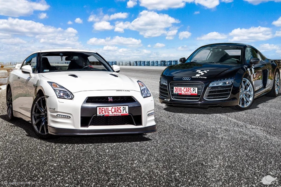 Podsyć motoryzacyjne emocje! Pojedynek Nissana GT-R i Audi R8 na torze wyścigowym z Devil-Cars. Japońska moc kontra niemiecka precyzja. Niespodzianka gwarantowana!