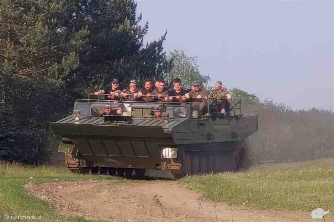 Voucher na przejazd amfibią na Ranczu w Dolinie to militarny zastrzyk adrenaliny dla maksymalnie 10 osób. Podczas przejażdżki na pancerzu opancerzonej amfibii gąsienicowej GSP/PTS uczestnicy poczują moc maszyny, poznają ciekawostki od instruktora i doświadczą emocji, których nie da się zapomnieć.