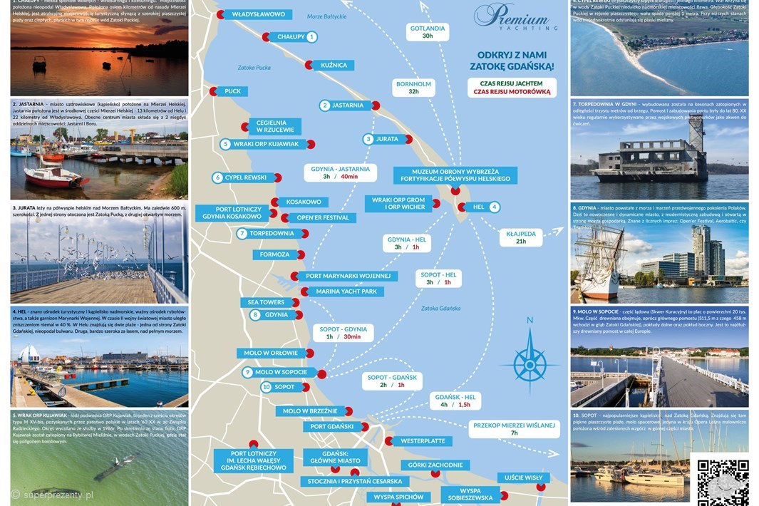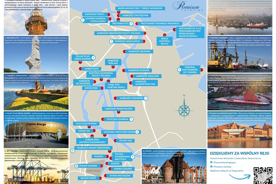 W trakcie rejsu będziecie mogli podziwiać urokliwe widoki polskiego wybrzeża z niestandardowej perspektywy. Poruszając się po Motławie, zobaczycie m.in. Główne Miasto od wody (Starówkę), Port Gdański, Nabrzeże, Twierdzę Wisłoujście i Westerplatte. Oprócz tego wyruszycie na wody Zatoki Gdańskiej, skąd popłyniecie do dowolnej mariny na Zatoce – Sopot, Gdynia.