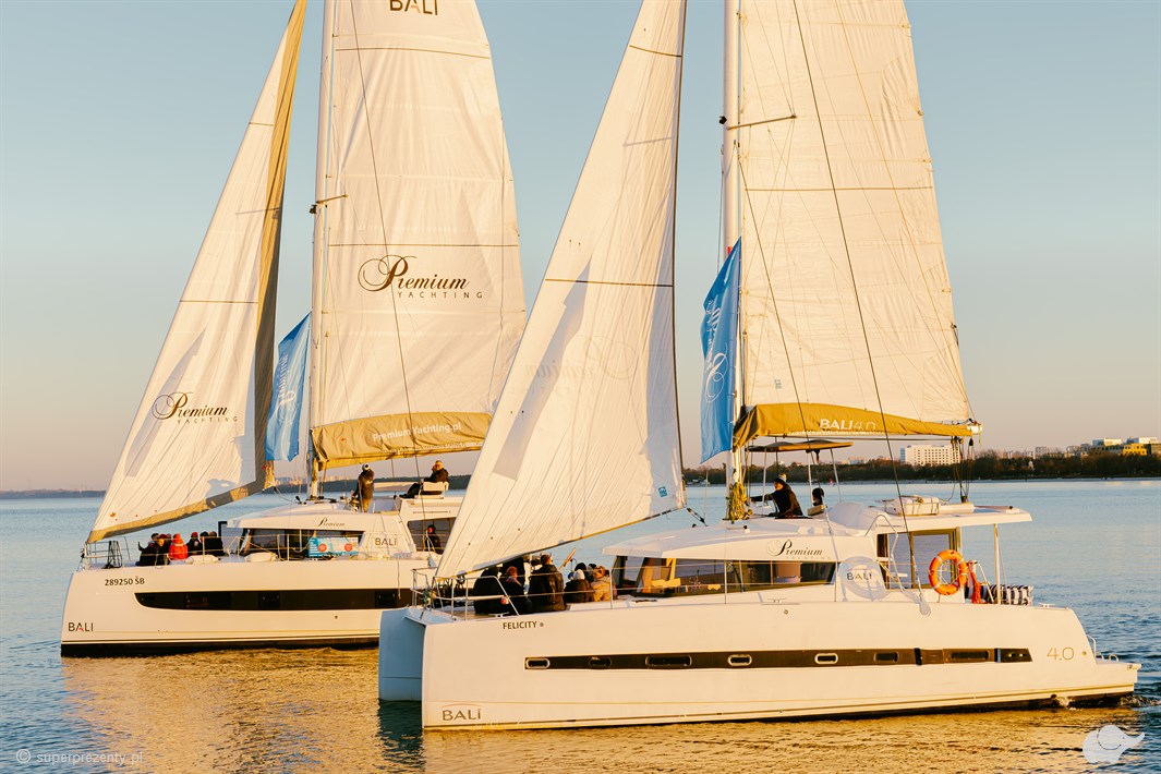 Pokład nowoczesnej jednostki zwanej Katamaranem może zabrać maksymalnie 15 osób w cudowny, godzinny rejs. Podczas jego trwania zagospodarowane mogą zostać zarówno pokłady zewnętrzne, jak i wewnętrzne, tak aby móc zorganizować na nich catering bądź imprezę na wodzie. Jeśli zatem szukasz oryginalnego miejsca na organizację ważnego wydarzenia, ta oferta z pewnością przypadnie Ci do gustu!