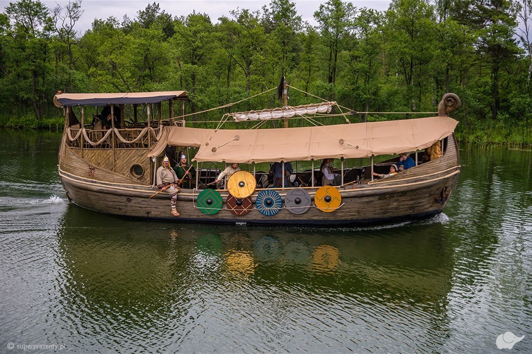 Zapraszamy na piękny rejs w Dolinę Rospudy statkiem pasażerskim “JAĆWIEŻ” – stylizowany, rekonstrukcyjny, nawiązujący do historycznego, średniowiecznego Plemienia Jaćwingów.