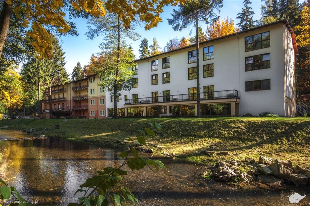 Nie da się wjechać na szczyt z zaciągniętym hamulcem, dlatego podarujcie sobie ogniste chwile w hotelu Mir-Jan. To mieszanina zmysłowych wrażeń, które wybudują Wam ścieżkę do westchnień w objęciach relaksu. Rozluźnienie pomoże Wam we wchłonięciu stu procent wolności ducha, a strefa wellness poda pomocną dłoń nerwom zakleszczonym pod brzemieniem egzystencji. Ciężar wrzucony do wody traci na wadze dzięki prawom wyporu, dlatego skorzystajcie z hotelowego basenu. W tym miejscu troski pękają niczym mydlana bańka szturchnięta beztrosko palcem roześmianego dziecka. Jeżeli pragniecie oczyszczenia, hotelowa sauna infrared wymiecie toksyny kąsające ciało, pomagając przy tym w przezwyciężeniu somatycznych oznak zmęczenia. A może pragniecie kontynuować lub rozpocząć drogę ku utrzymaniu sylwetki? W ramach vouchera, otrzymacie również wolny wstęp na siłownię wyposażoną w sprzęt pozwalający na zaangażowanie większości partii mięśniowych. Warto jednak wspomnieć o tym, co najważniejsze w tym królestwie wytchnienia. To nieograniczony dostęp do piękna natury, a w szczególności górzystych terenów. Tutaj nawet widok z okna umila potok pobliskiej rzeki. Przestronne pokoje, piękno przyrody, aktywność i zabawa – tego potrzeba ciału znużonemu codzienną jednostajnością.