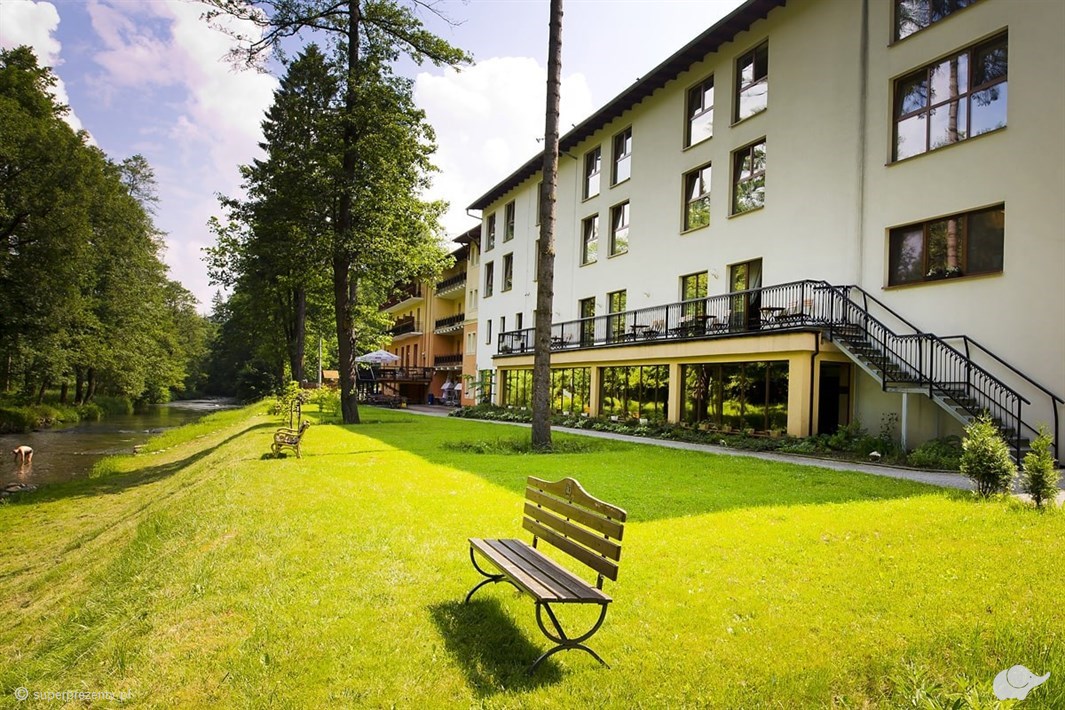- 3 noclegi ze śniadaniem dla 2 osób w pokoju standard od rzeki, obiadokolacjami i wstępem do strefy wellness (basen, jacuzzi, sauna infrared i siłownia)