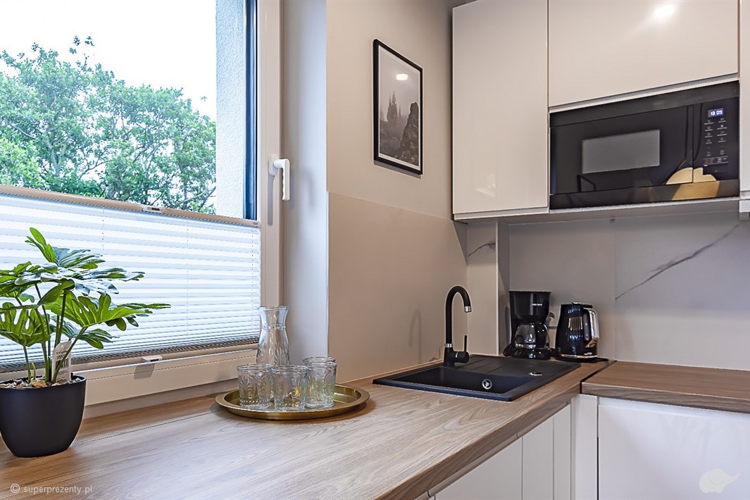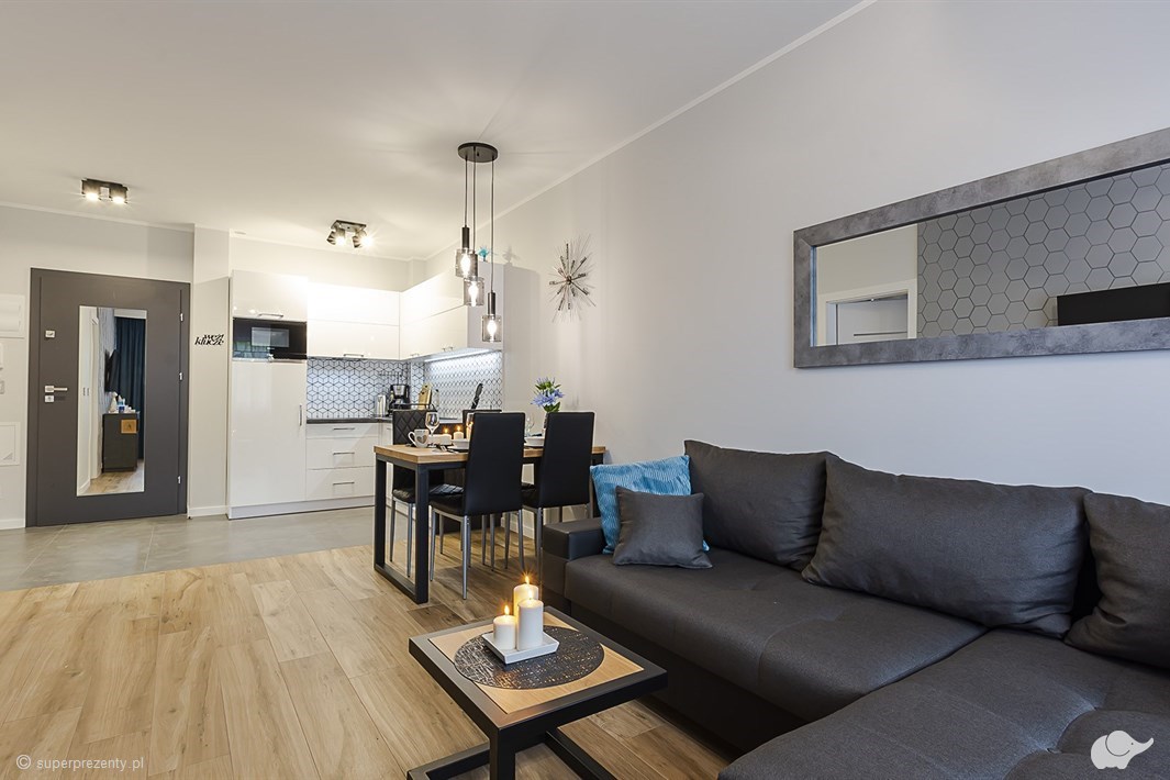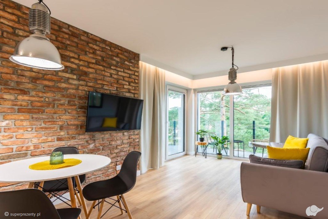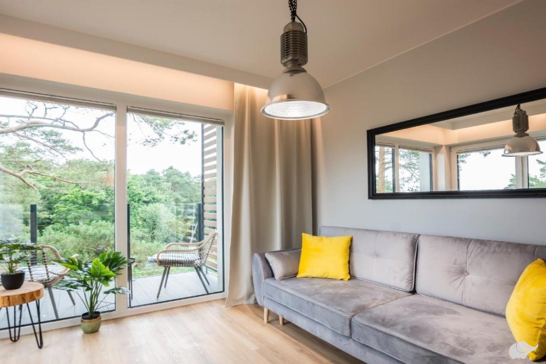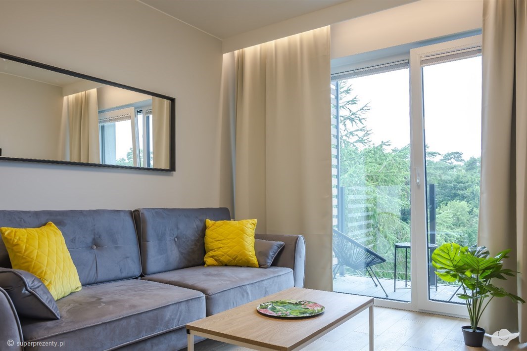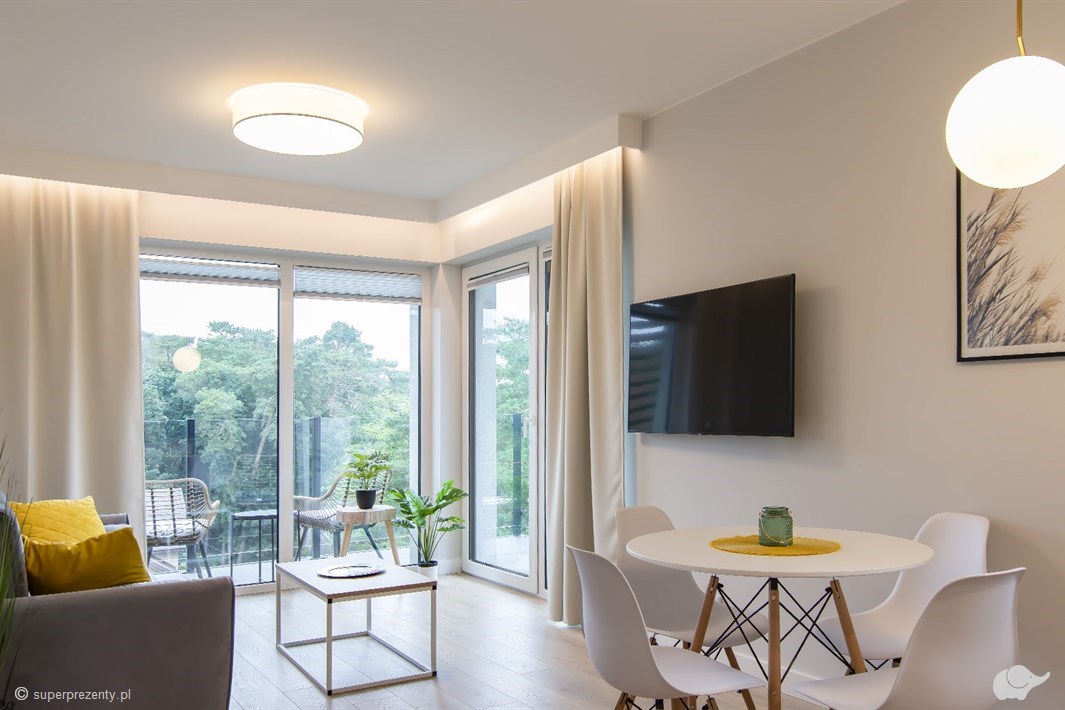 Niniejsza oferta zapewnia pobyt w gustownym apartamencie VacationClub Sosnowa Apartments znajdującym się w nowo wybudowanym apartamentowcu, położonym ok. 400 metrów od plaży oraz 400 metrów do Jeziora Jamno. Lokal składa się z salonu z rozkładaną sofą, w pełni wyposażonego aneksu kuchennego, sypialni z komfortowym i bardzo wygodnym dużym łóżkiem małżeńskim, łazienki z przestronną kabiną prysznicową oraz balkonu. Apartament jest wyposażony we wszystkie sprzęty niezbędne podczas dłuższych pobytów rodzinnych, zapewnia m.in. żelazko, sprzęty kuchenne oraz suszarkę. Widok z tarasu i panoramicznych okien rozciąga się z kolei na zieleń oraz cichą, spokojną okolicę zapewniającą swobodę wypoczynku.