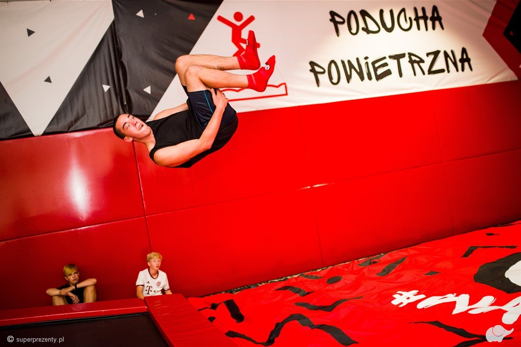 Największa przestrzeń do szaleństwa – proste akrobacje czy zwykłe unoszenie się są tutaj na porządku dziennym. Nic nie ograniczy swobody i wyobraźni. Można odbijać się nawet od ścian, które również są trampolinami!
