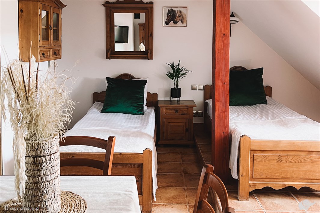 Ośrodek rodzinny Beskidy – Końska Dolina ma w zanadrzu wiele udogodnień, aby zapewnić Wam komfortowy wypoczynek. Apartament rodzinny o powierzchni 40 m² wyposażony jest w wygodne łóżka, mini aneks kuchenny, lodówkę, przybory kuchenne, czajnik elektryczny oraz telewizor z płaskim ekranem. Łazienka zawiera wannę lub prysznic, zestaw kosmetyków i komplet ręczników. Widok z Waszego pokoju może rozciągać się na góry lub ogród (w zależności od dostępności) – a jest na czym zawiesić oko! Ponadto do swojej dyspozycji będziecie mieć bezpłatny parking i Wi-Fi. Na malowniczym i obszernym terenie obiektu skorzystacie ze ścieżek spacerowych, tras wycieczek konnych oraz miejsc do piknikowania.