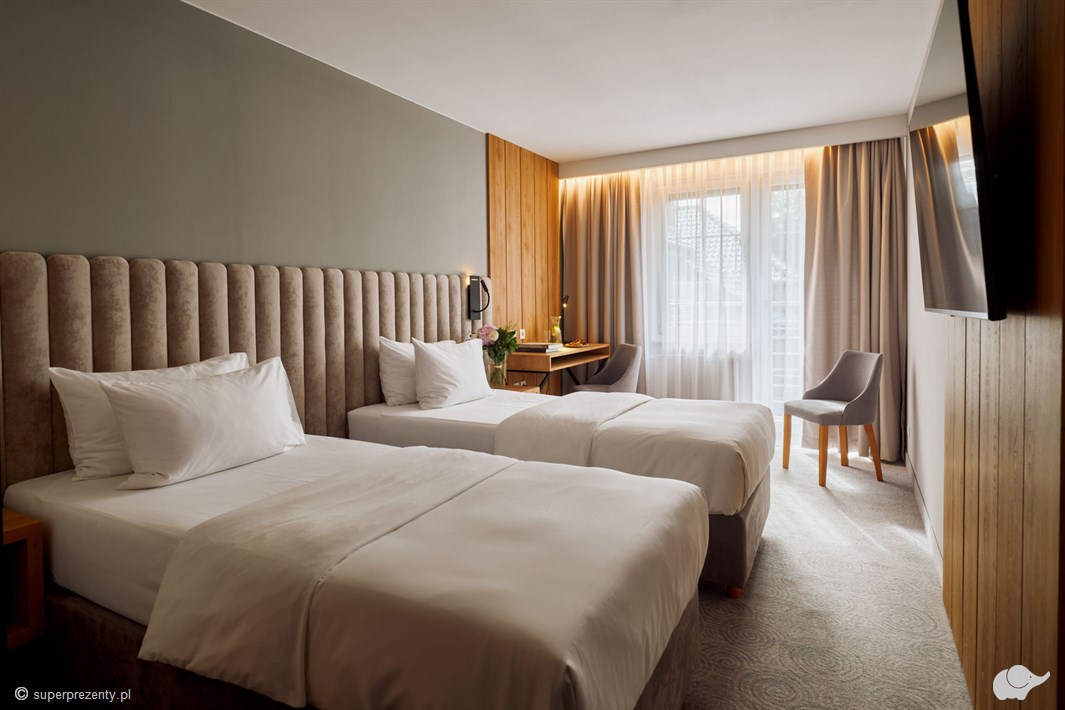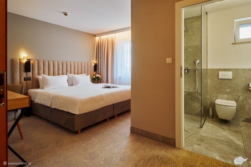 2 osoby dorosłe oraz 1 dziecko do lat 14 i jedno dziecko do lat 3 śpiące z rodzicami w łóżku.Na realizację zabierz ze sobą voucher. Vouchery nie obowiązują w okresie letnim (lipiec- sierpień), ani w okresach specjalnych (Wielkanoc, majówka, Boże Ciało, Boże Narodzenie, Sylwester). Hotel ma prawo odmówić rezerwacji w danym terminie i zaproponować inny. Zmiana rezerwacji możliwa jest tylko po uprzednim kontakcie z hotelem i za zgodą hotelu. Warunkiem dokonania rezerwacji jest kontakt mailowy z hotelem. Hotel oferuje udogodnienia dla niepełnosprawnych (po uprzednim kontakcie). W przypadku niepojawienia się gości w hotelu zgodnie z dokonaną rezerwacją, rezerwacja będzie trzymana do dnia następnego do godz. 12.00- po tym czasie rezerwacja zostaje anulowana, a voucher uznaje się za zrealizowany.