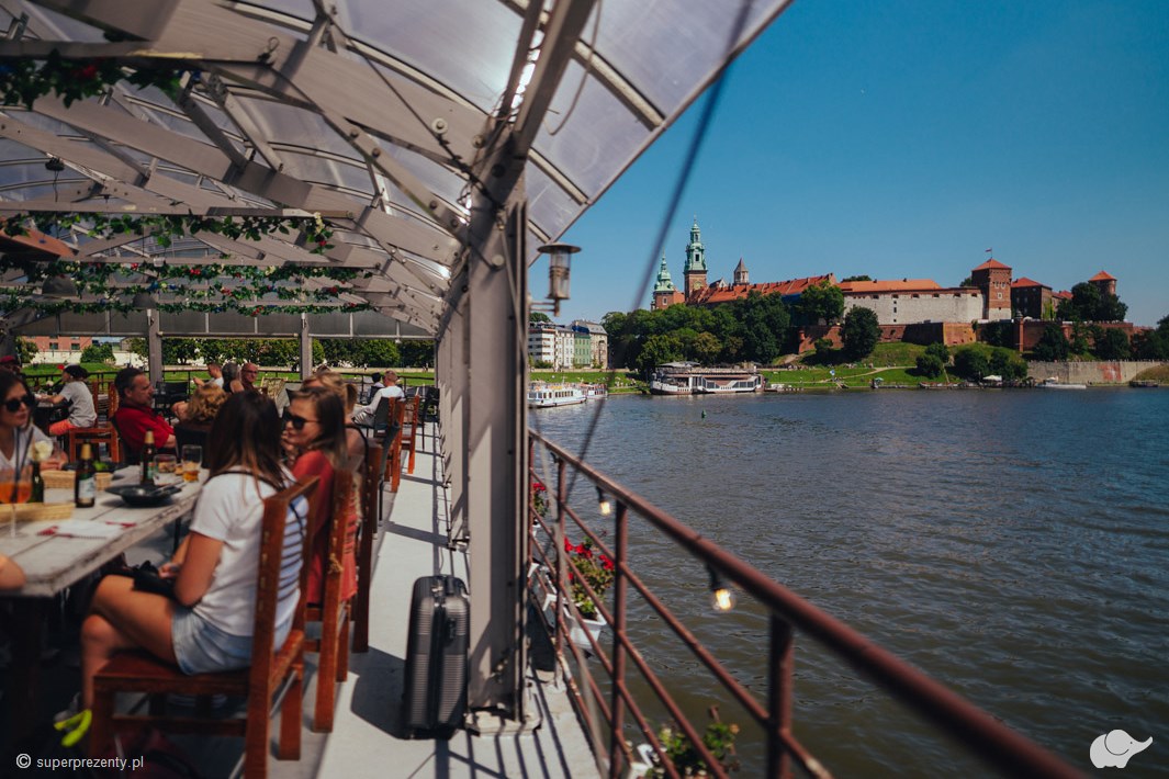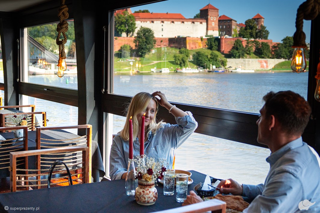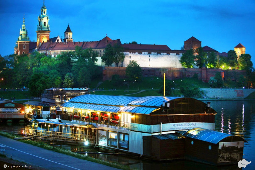 Kelnerzy zacumowanej u podnóża Wawelu restauracji Aquarius zaserwują wykwintną kolację składającą się z przystawki, zupy, dania głównego i deseru. Smaki tradycyjnej kuchni polskiej, przygotowanej ze świeżych, lokalnych składników, stworzą idealne tło dla wieczoru spędzonego w pojedynkę lub w towarzystwie bliskiej osoby. Odpowiednio dobrane białe lub czerwone wino doskonale uzupełni kulinarną podróż. Wyrafinowane smaki i zabytki Krakowa oglądane z perspektywy rzeki – czy można wyobrazić sobie bardziej magiczny wieczór?