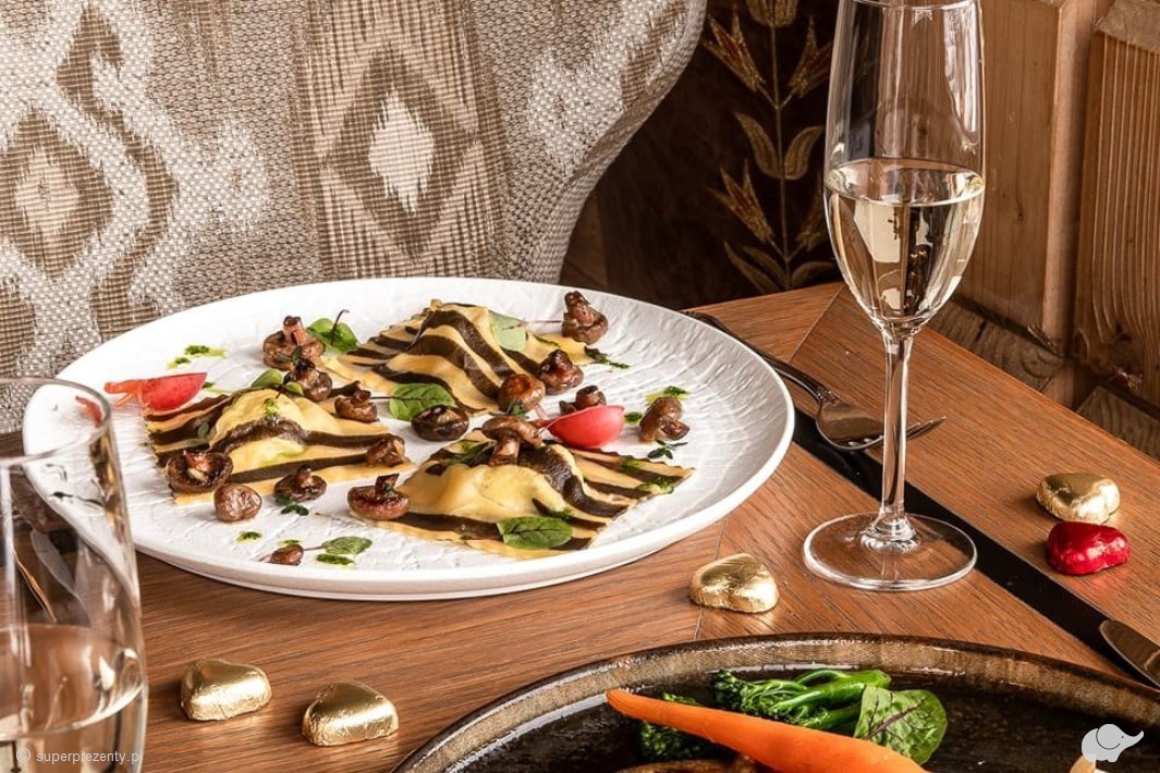 Wnętrza, w których zasiądą obdarowani voucherem, są hołdem dla stylu zakopiańskiego preferowanego przez Stanisława Witkiewicza. Podczas kolacji spróbują dań przygotowanych z produktów od lokalnych dostawców, dzięki czemu rozsmakują się w autentycznych, regionalnych specjałach. Trzydaniowe menu degustacyjne zostanie podane w otoczeniu pięknie rzeźbionych detali typowych dla Podhala. Romantyczna kolacja w Zakopanem z widokiem na panoramę Tatr zaspokoi zarówno zmysł wzroku, jak i smak kulinarną maestrią szefa kuchni!