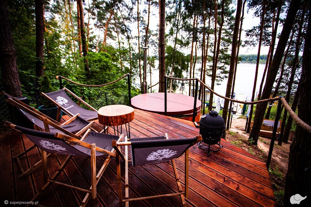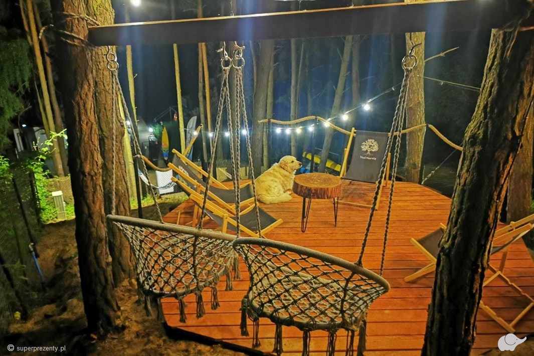 Spokojne poranki z kawą na tarasie, witający śpiew ptaków i widok na leniwie płynącą Narew. Po południu relaks w hamaku lub romantyczna kąpiel w balii pod gołym niebem. A wieczorem grillowanie w cieniu drzew i liczenie gwiazd. Glamping nad Narwią to nie tylko nocleg, to niezapomniane przeżycie, które zauroczy obdarowanych.