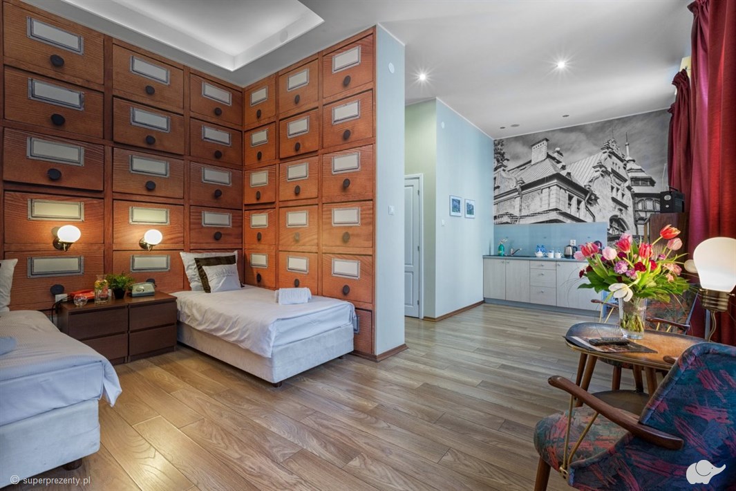Stare Kino Cinema Residence narodziło się wczesną jesienią 2013 roku, oferując 22 filmowe apartamenty dedykowane najlepszym polskim filmom i serialom. Z biegiem czasu okazało się że odkrywców nietuzinkowych hoteli, poszukiwaczy gustownych wnętrz i miłośników kina stale przybywa, dlatego też w 2014 r. do naszej rodziny filmowych pokoi dołączyło 20 kolejnych apartamentów. Przy tworzeniu tego miejsca współpracowaliśmy z wybitnymi architektami, znakomitymi dekoratorami wnętrz i specjalistami od najnowszych technologii. Dzięki temu dopieściliśmy każdy detal i dopracowaliśmy najdrobniejszy szczegół filmowej koncepcji hotelu.